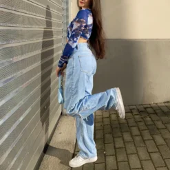 Summer Women’S Fashion Print Round Neck Street Hipster Mesh Patchwork Long Sleeve Top