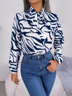 Fall Fashion Print Slim Waist Button Blouse Long Sleeve Shirt