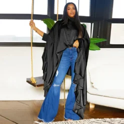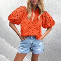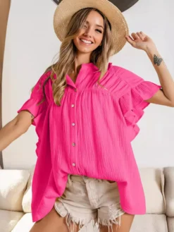 Summer Women’s Fashion Stand Collar Ruffle Sleeve Casual Top