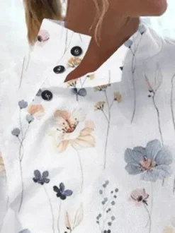 Summer Women’s Fashion Print Casual V Neck Tie Short Sleeve Top