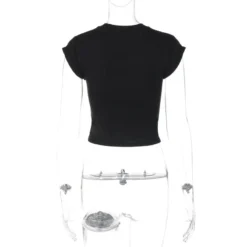 Women Summer Casual Sexy Crop Round Neck Printed T-Shirt Top