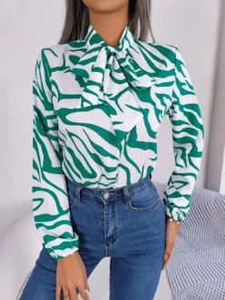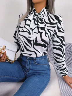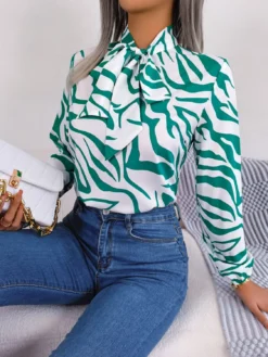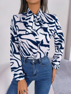 | Product Name | Autumn And Winter Chic Color Contrast Striped Tie Lantern Sleeve Chiffon Shirt Women’s Clothing |