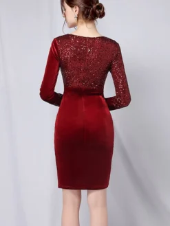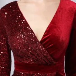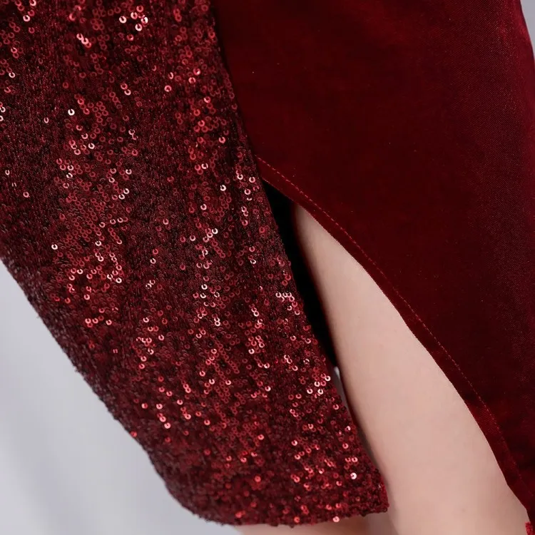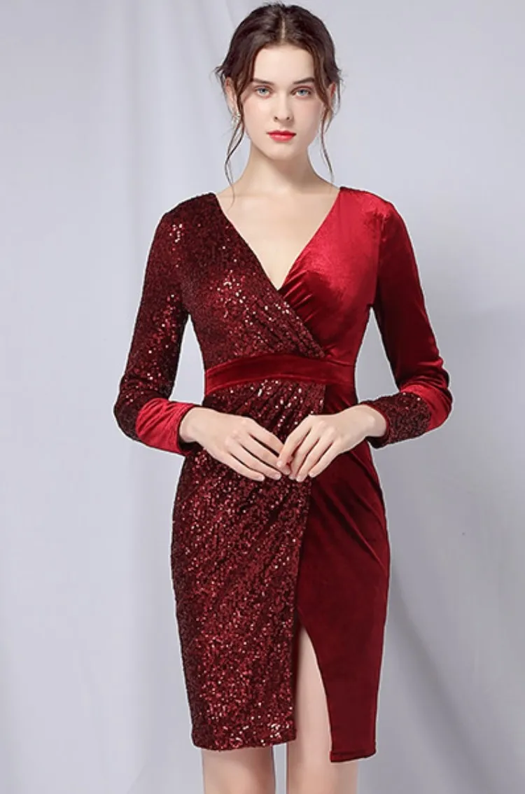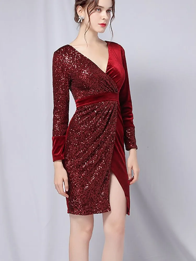 | Product Name | Autumn Formal Red Patch Sequin Wrap Cocktail Dress |
