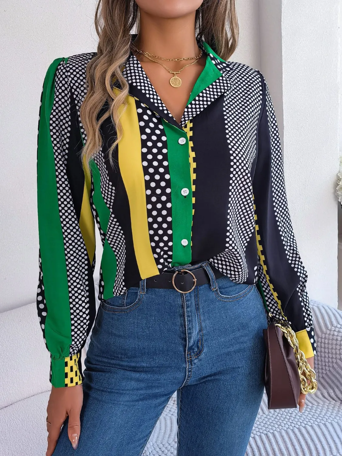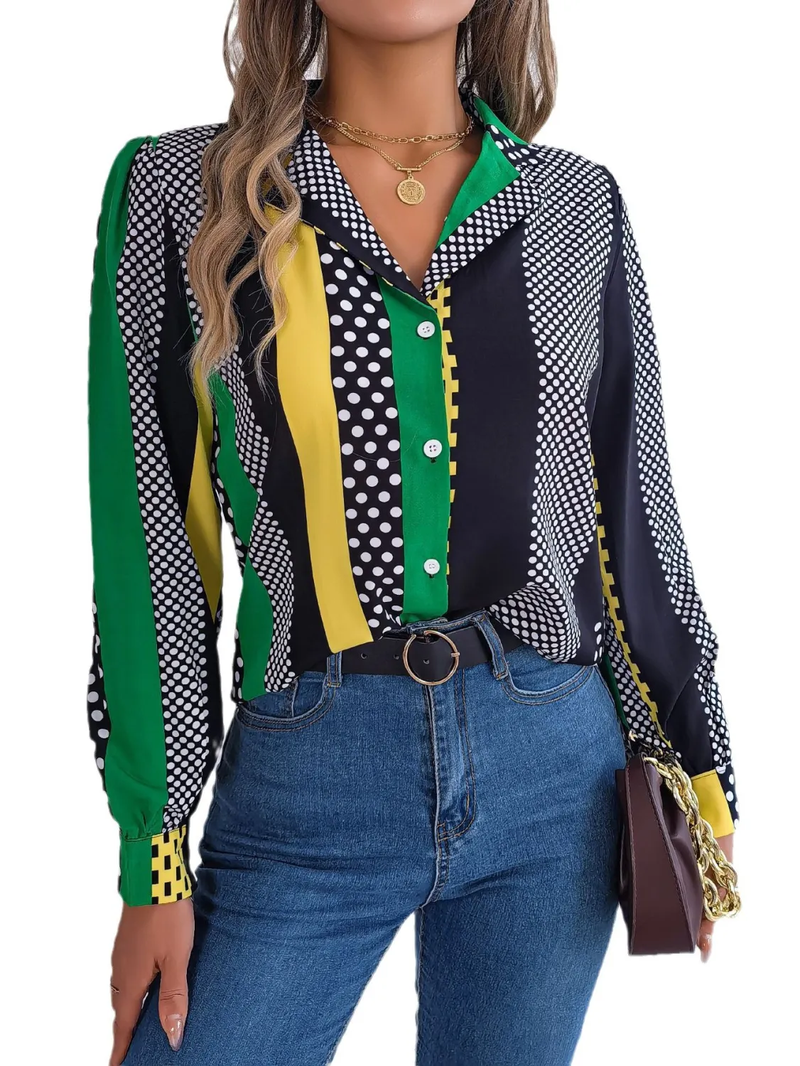 | Product Name | Autumn/Winter Career Chic Contrasting Polka Dot Turndown Collar Long Sleeve Shirt Women’s Clothing |