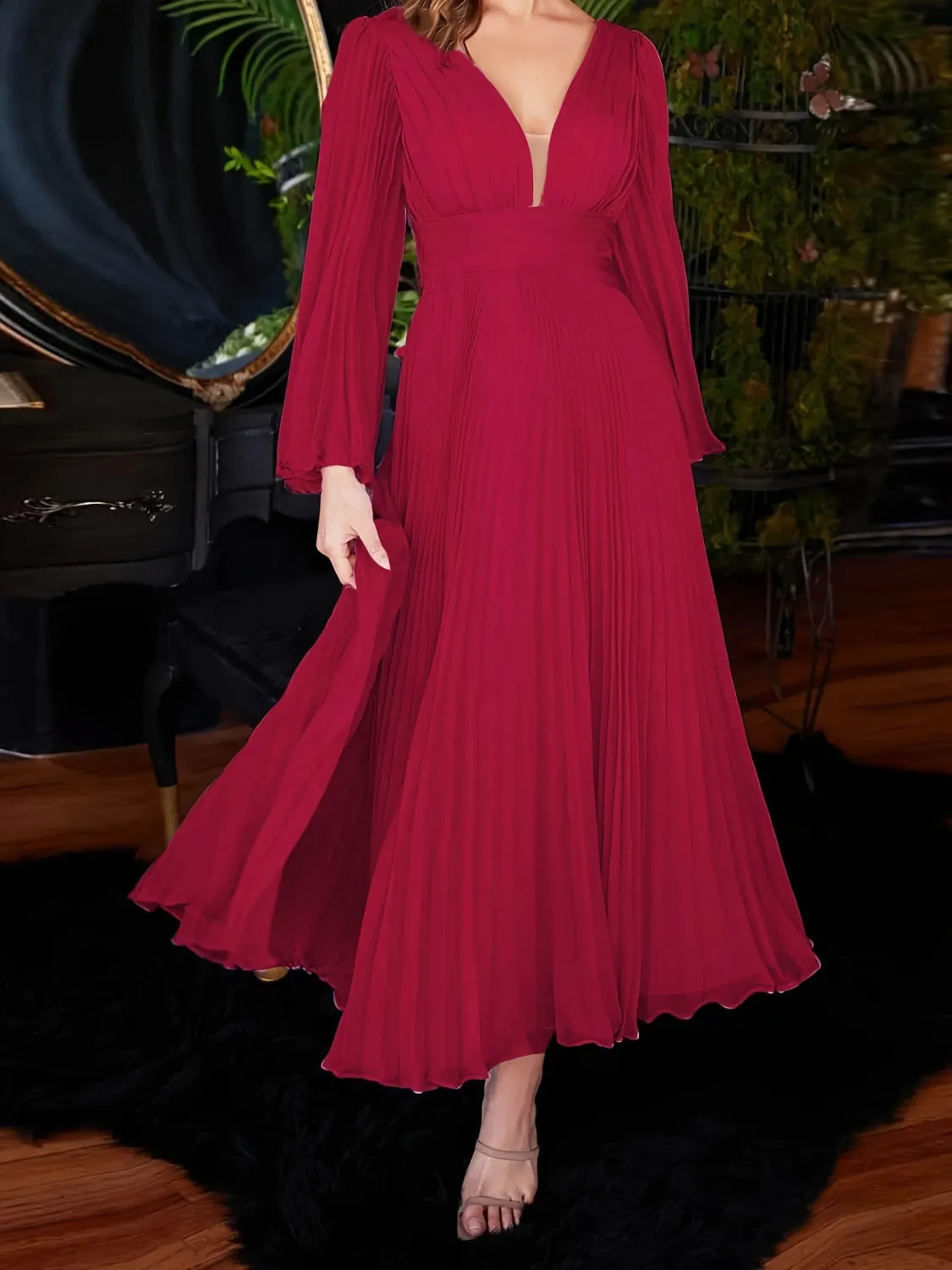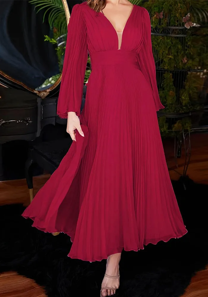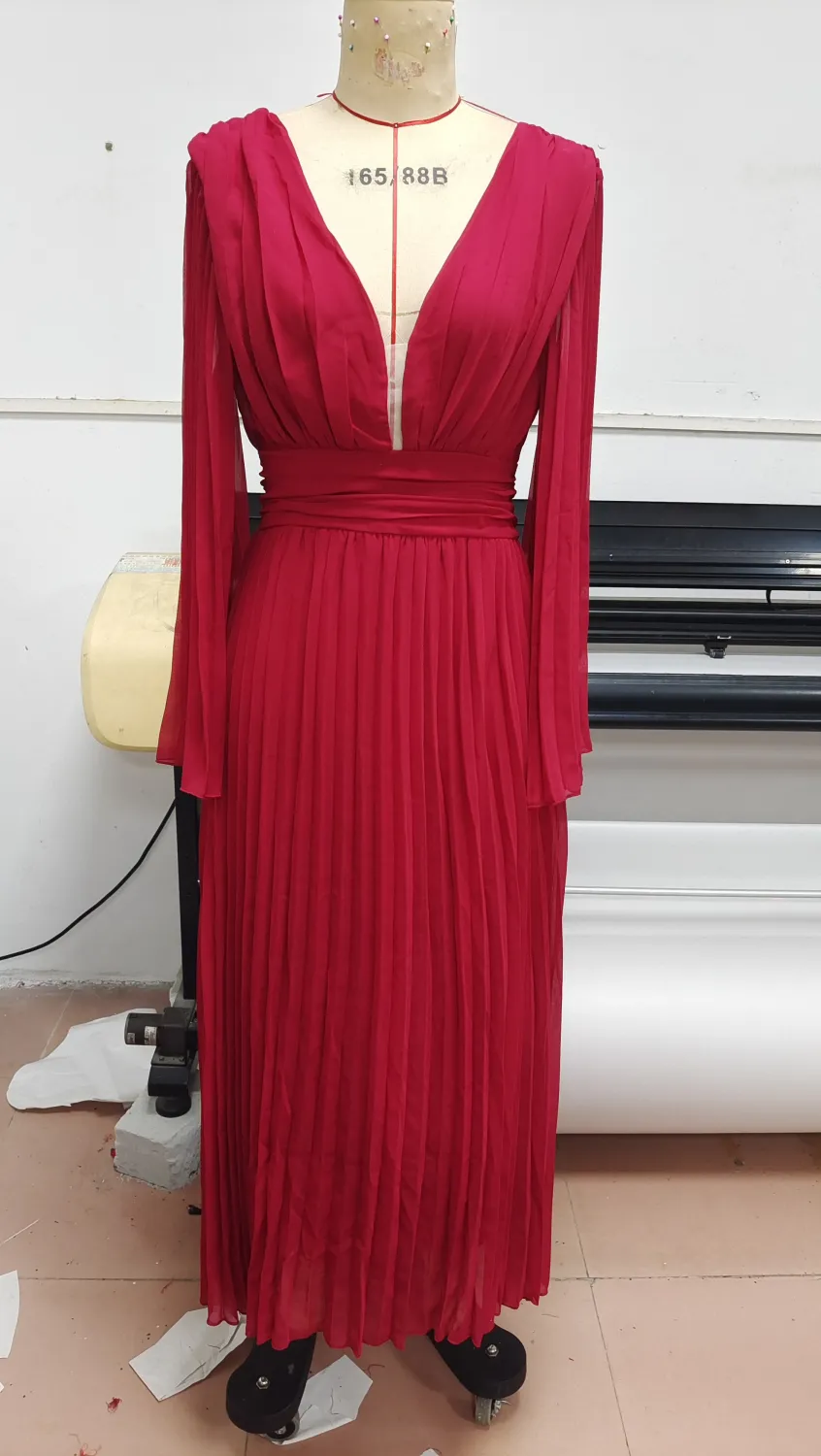 | Product Name | Autumn Women’s Clothes Sexy Pleated Chiffon Long Sleeve Dress Slim Mid Dress |
