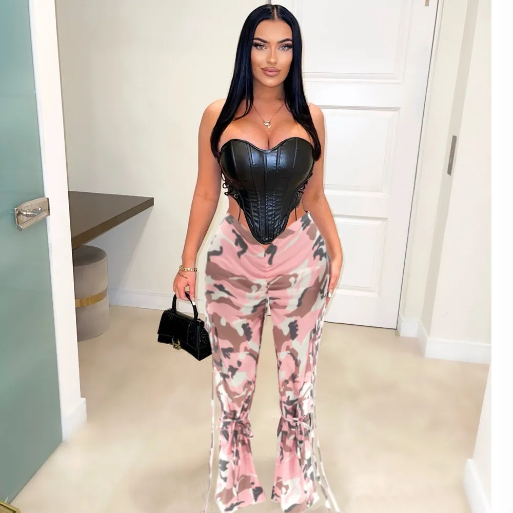 This Camouflage Pattern Pleated Strings Pants Design Made Of Durable And Stretchy Material. It Is a Must-Have Item For Everyday Life. Women Casual Pants Wholesale At Global Lover Has Wide Range Selections On Colors, Material, Print, And Designs. Ladies Can Always Find Her Right Trousers Here – No One Can Refuse The Temptation Of Sexy Leather Pants. Cool Jeans Trousers Is a Must-Have Item For Ladies No Matter What Age. Flared Pants Is Here Again, Becoming One Of The Icons Of Fashion Once Again. When You Need More Wholesale Women Trousers, You Can Always Find What You Need On Our Wholesale Women Clothing Online Store.