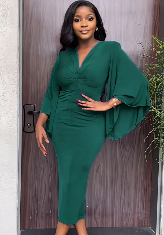 This Chic Bat Sleeves Low Cut Tight Fitting Women’s Dress Design Made Of High Quality Polyster And Spandex Material. It Come With Good Stretch And Wearing Comfortable. Womenโs Midi Dresses Is Omnipotent And Suit For All Kinds Of Occasions – Daily Wear, Go To The Church, Commuting And Events Occasion. Midi Dresses Should Not Be Boring, Find Best Midi Dresses At Global Lover With Trendy Styles.