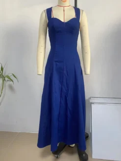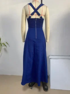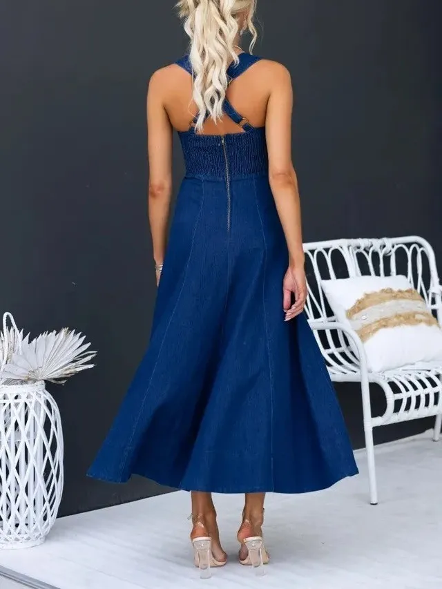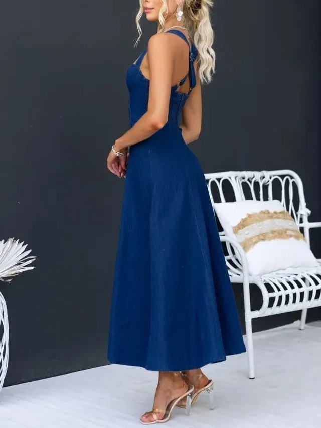 | Product Name | Chic Elegant Solid Slim Waist Strappy Denim Midi Dress |