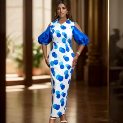 This Chic Shoulder Cutout Puff Sleeve Polka Dot Printed Party Dress Design Made Of High Quality Polyster And Spandex Material. It Come With Good Stretch And Wearing Comfortable. Womenโs Midi Dresses Is Omnipotent And Suit For All Kinds Of Occasions – Daily Wear, Go To The Church, Commuting And Events Occasion. Midi Dresses Should Not Be Boring, Find Best Midi Dresses At Global Lover With Trendy Styles.