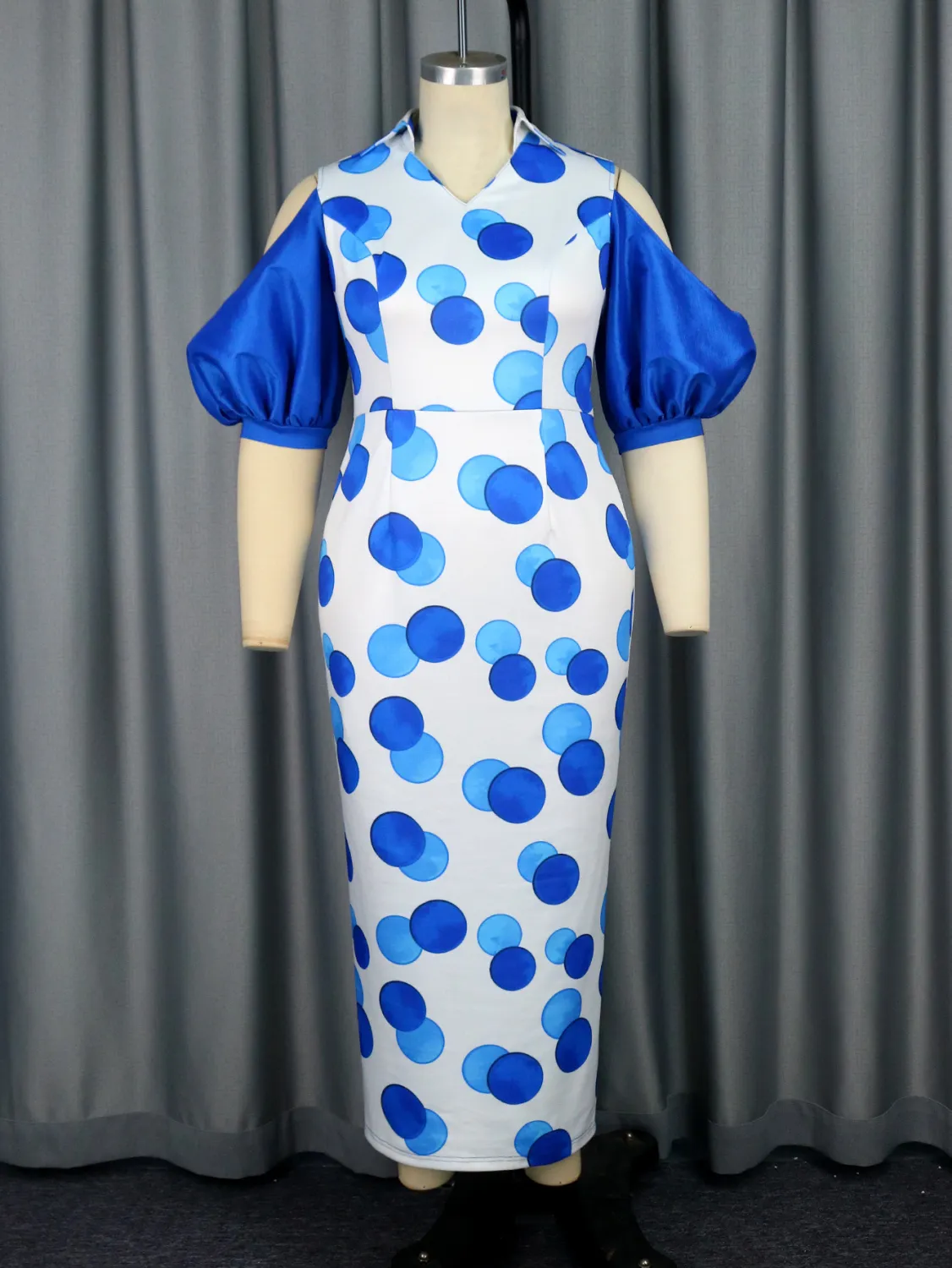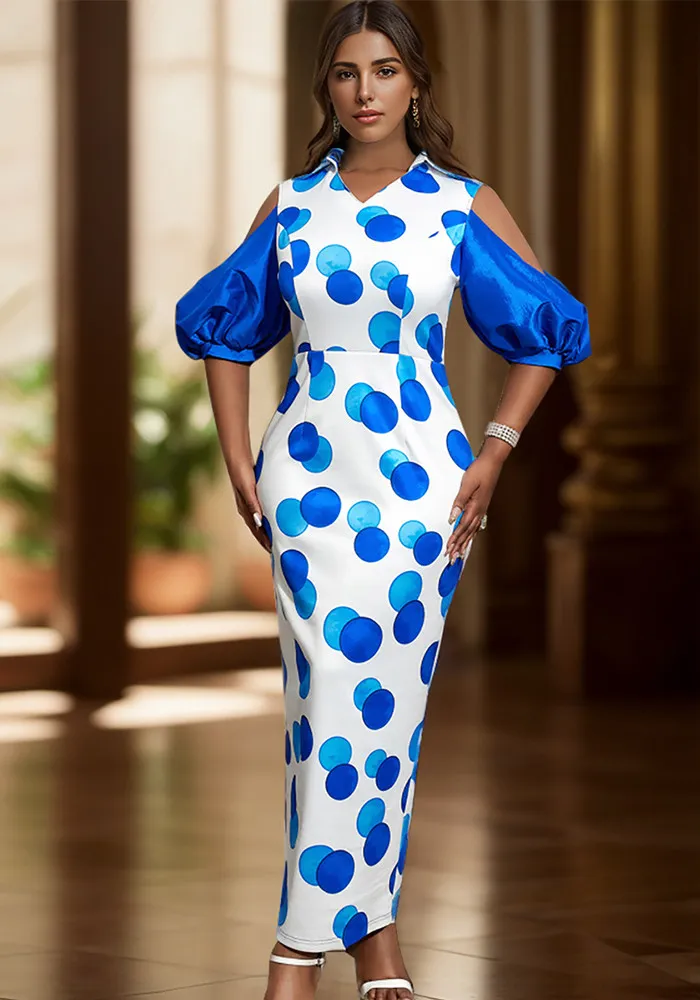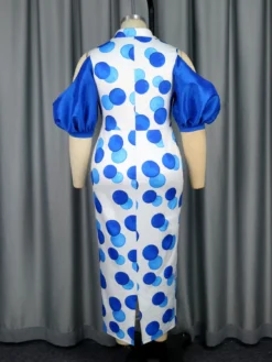 | Product Name | Chic Shoulder Cutout Puff Sleeve Polka Dot Printed Party Dress |