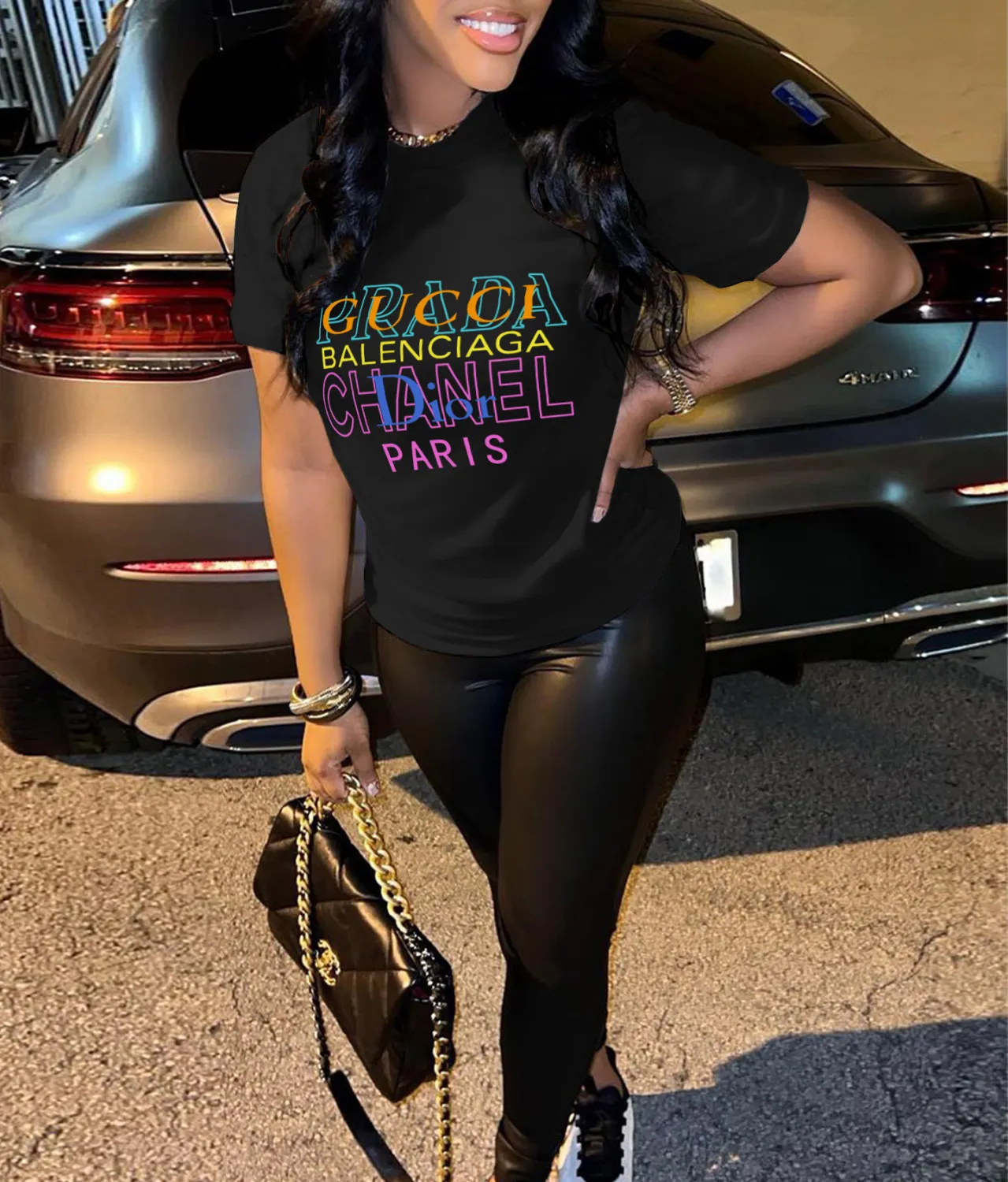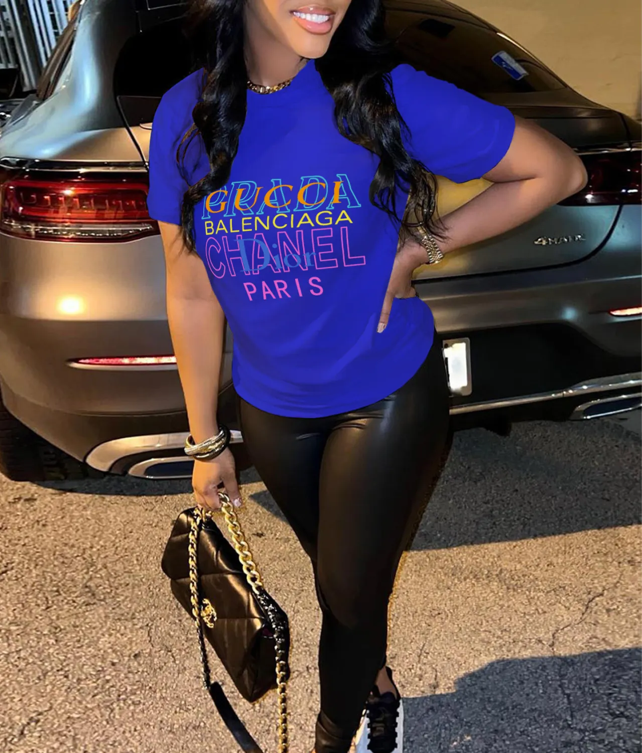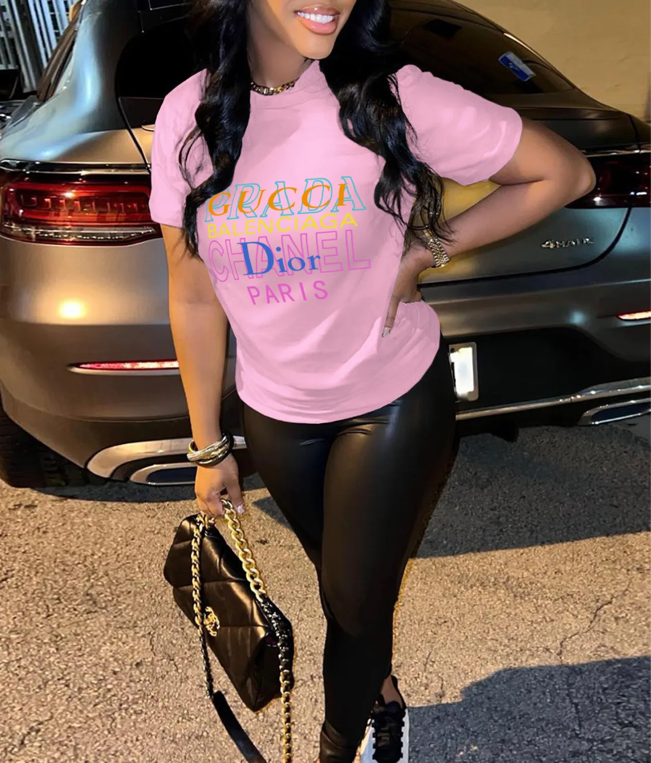 This Cotton Printed Straight Pullover Round Neck Short-Sleeved t-Shirt Design Made Of Thick Polyster And Spandex Materail, Which Is Soft And Comfortable. It Is a Must-Have Item For All Seasons. Global Lover Offer Most Fashionable Wholesale Women’s t Shirts – From Basic White And Black t Shirts To Lace, And Print t Shirts For Wholesale. We Also Make Customized Shirt With Your Personalized Logo And Print With Low Moq.