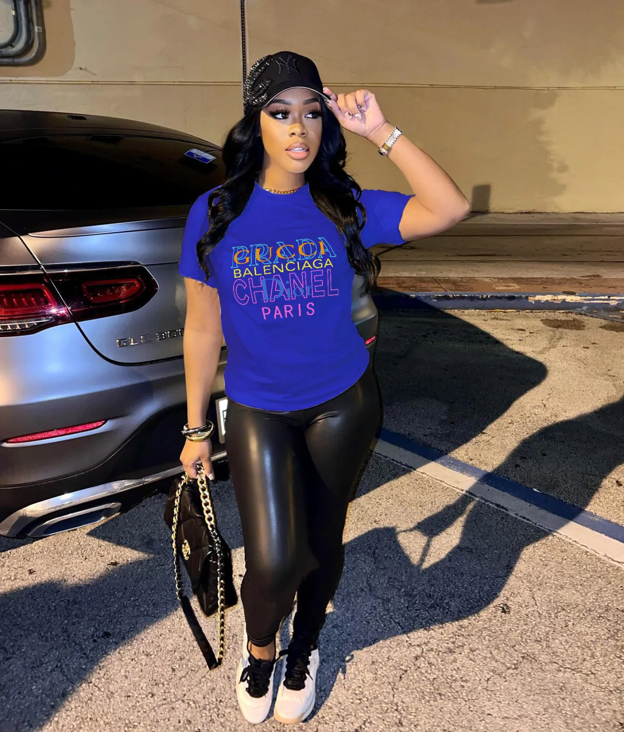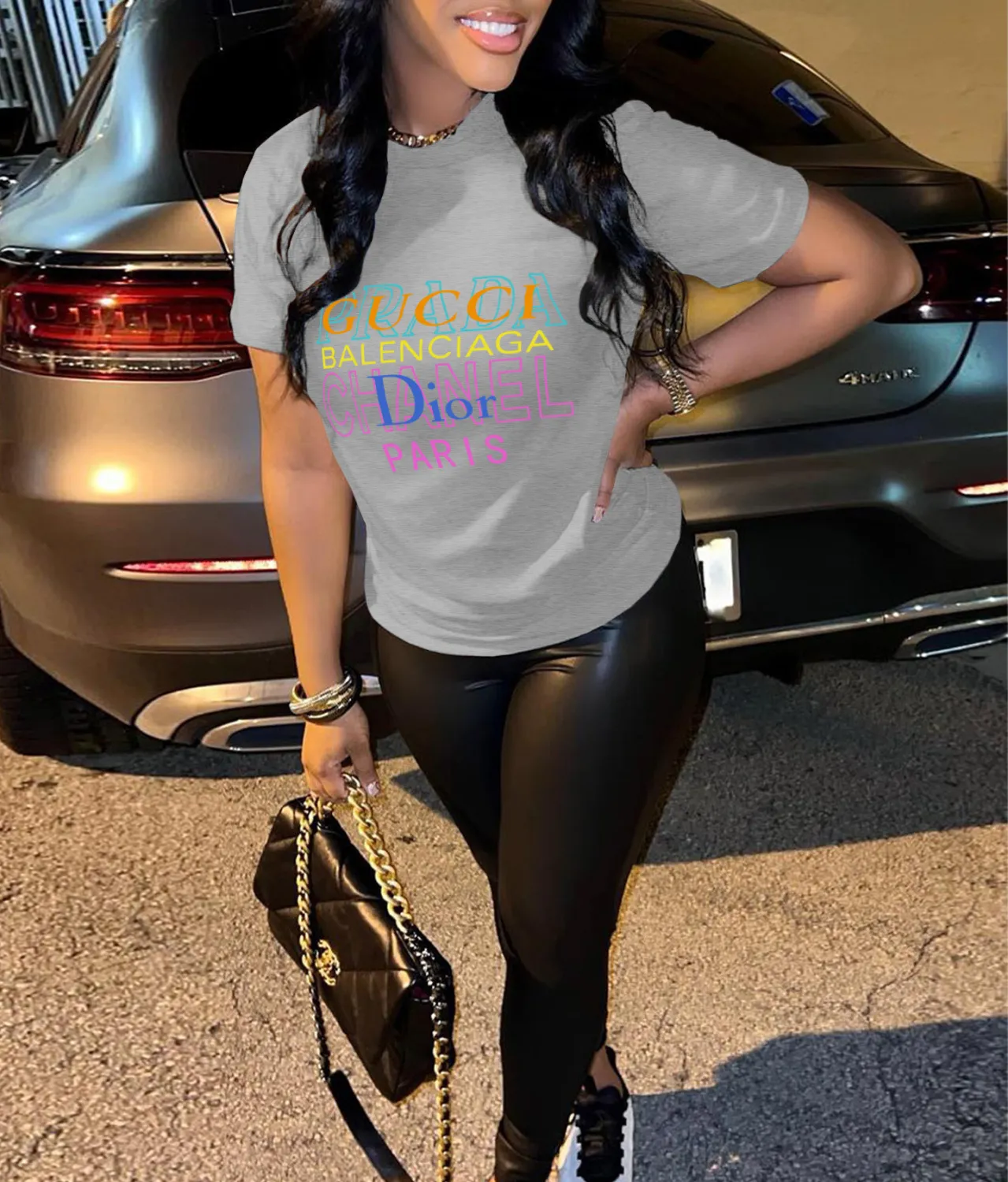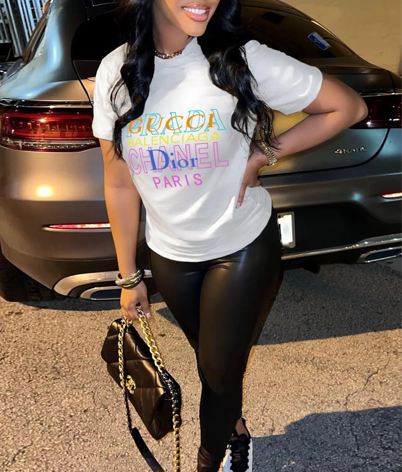 This Cotton Printed Straight Pullover Round Neck Short-Sleeved t-Shirt Design Made Of Thick Polyster And Spandex Materail, Which Is Soft And Comfortable. It Is a Must-Have Item For All Seasons. Global Lover Offer Most Fashionable Wholesale Women’s t Shirts – From Basic White And Black t Shirts To Lace, And Print t Shirts For Wholesale. We Also Make Customized Shirt With Your Personalized Logo And Print With Low Moq.