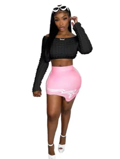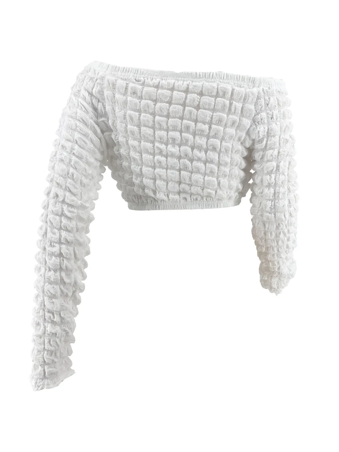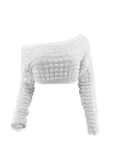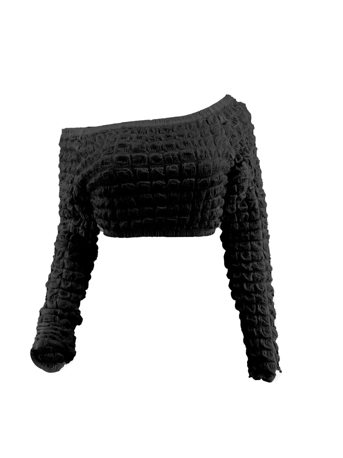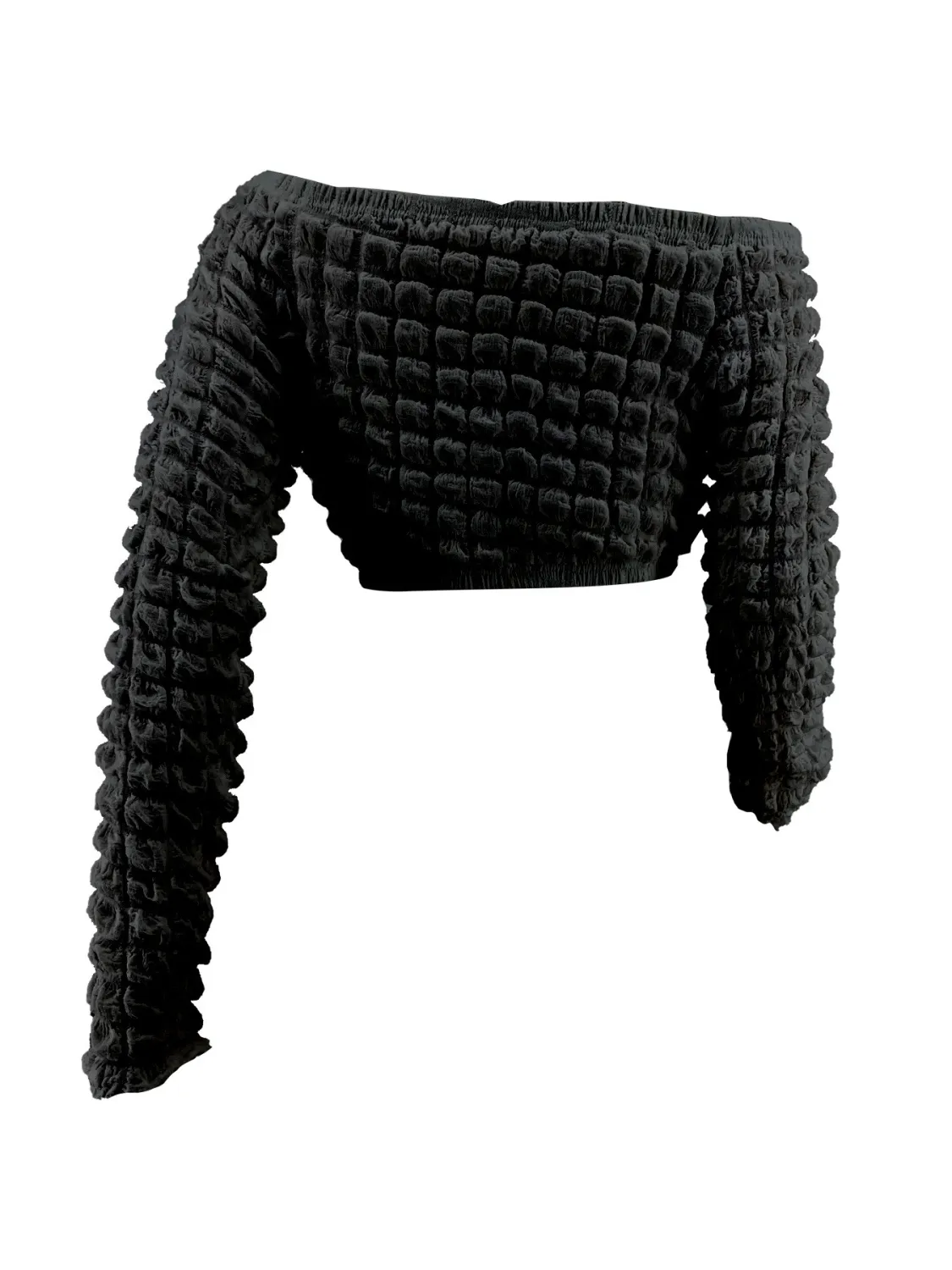 | Product Name | Cute Bubble Fabric Solid Off Shoulder Long Sleeve Crop Top |
