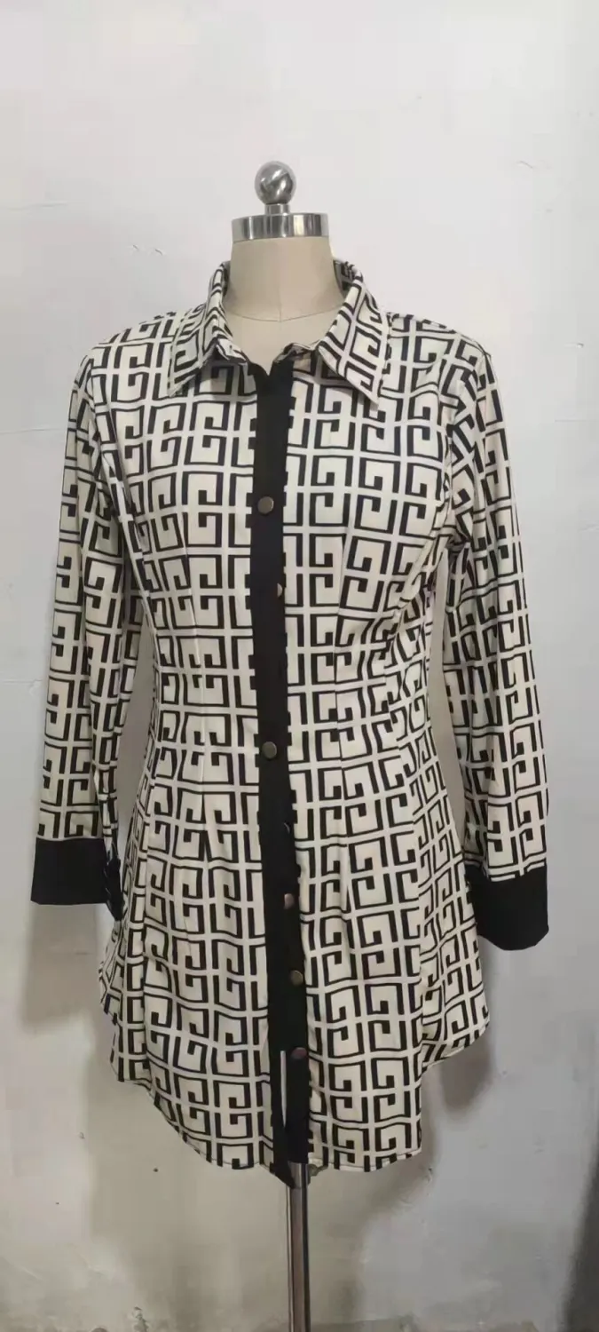 | Product Name | Fall Fashion Print Slim Waist Button Blouse Long Sleeve Shirt |