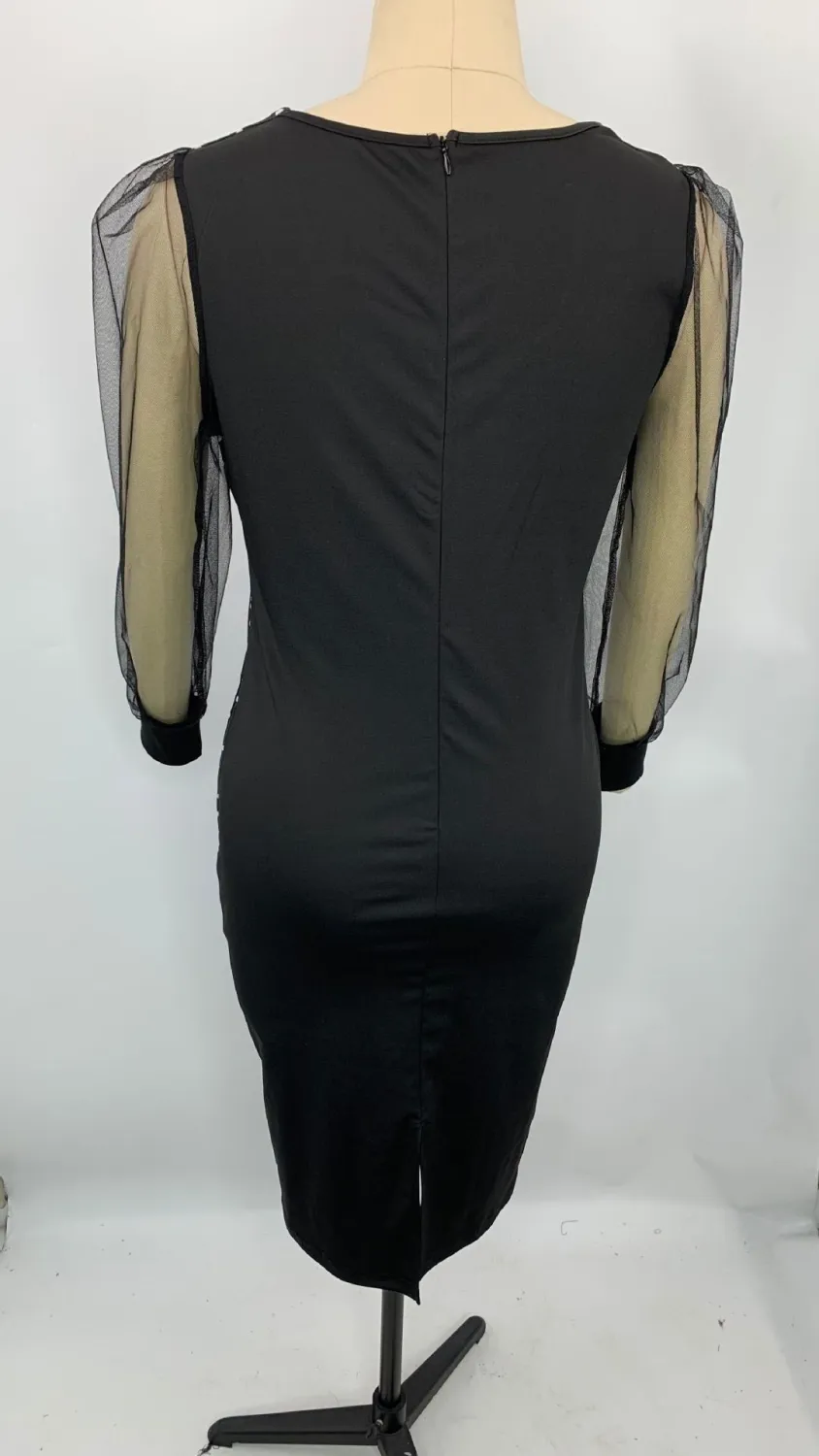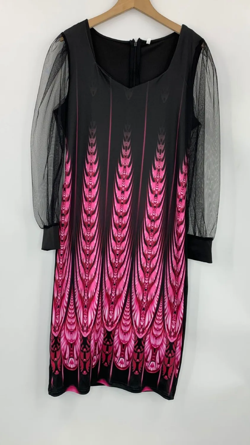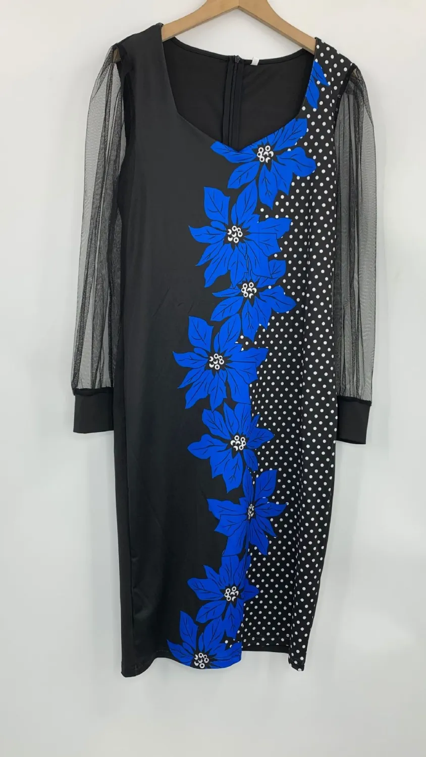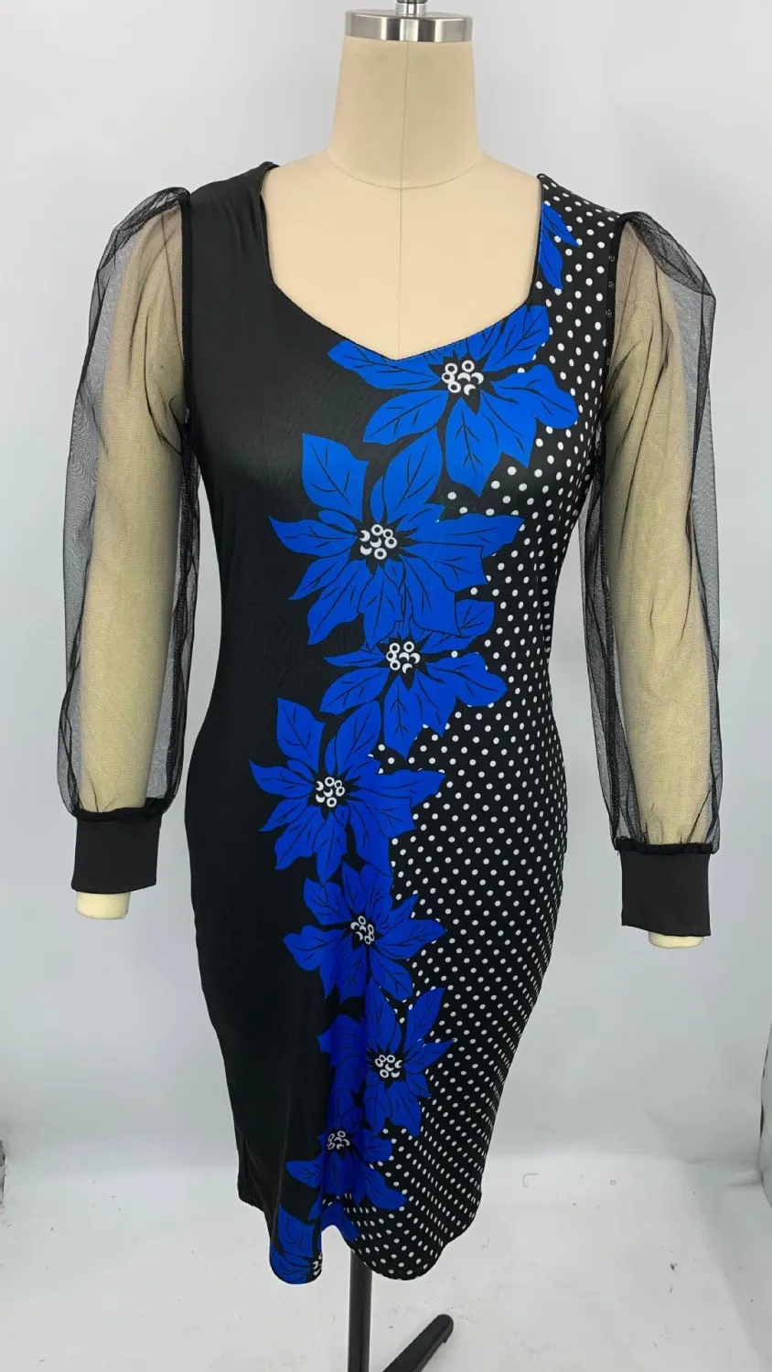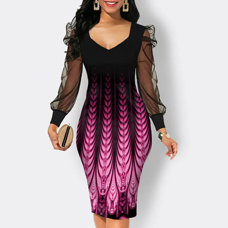 | Product Name | Fall Print Dress Women’s Mesh Sleeves Pencil Midi Bodycon Dress |