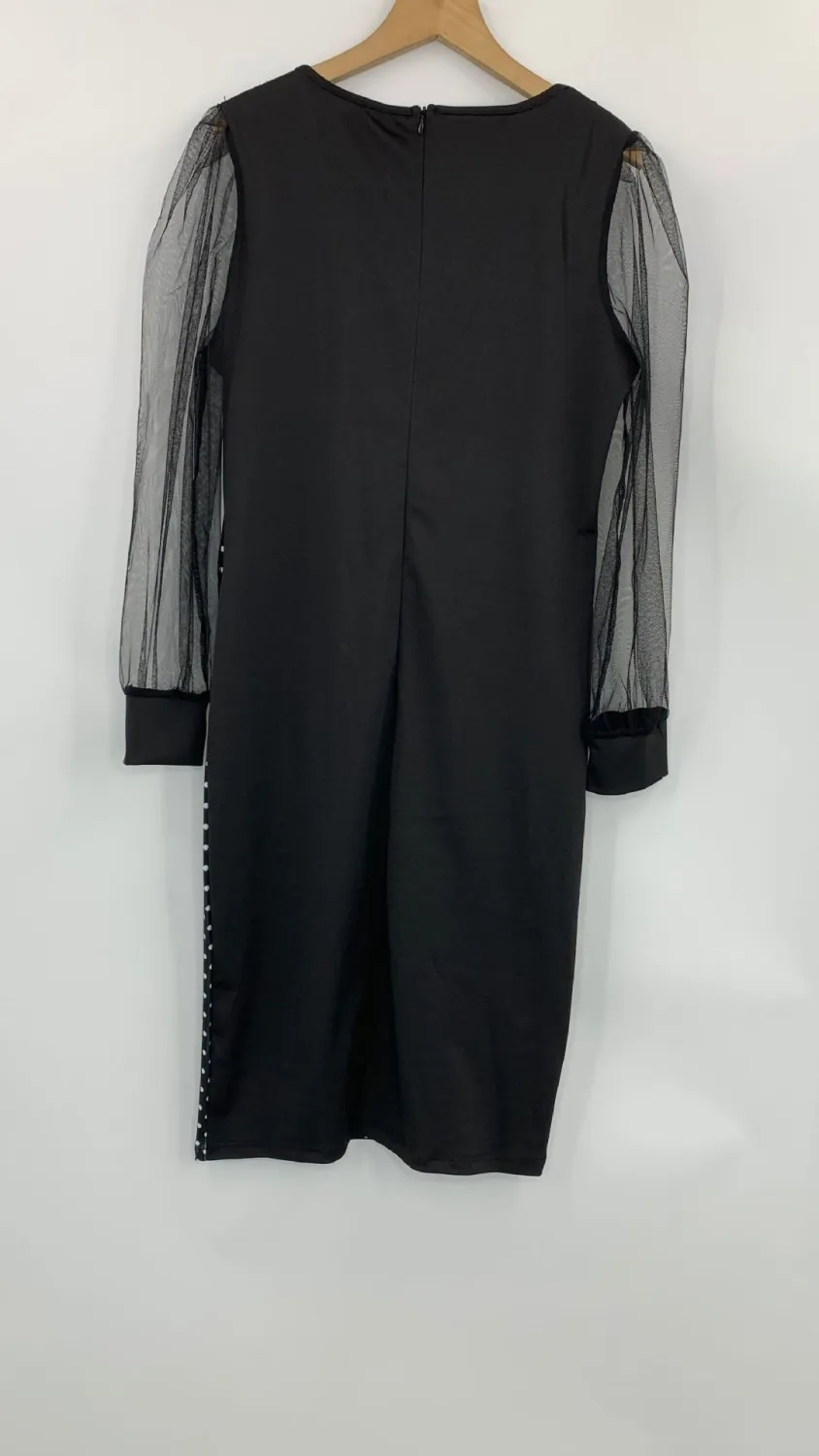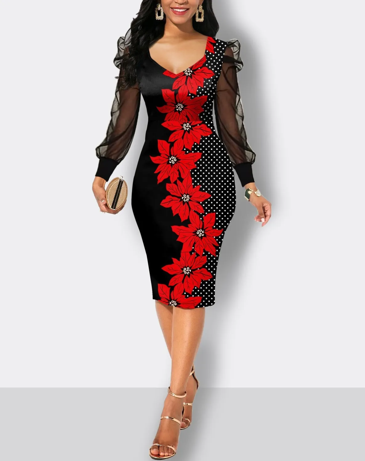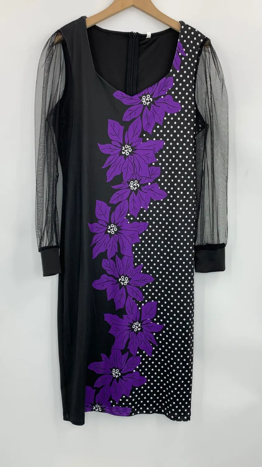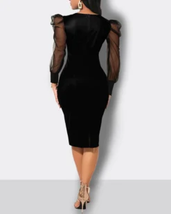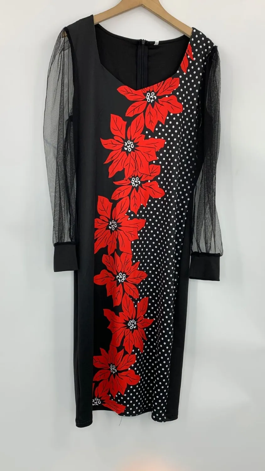 | Product Name | Fall Print Dress Women’s Mesh Sleeves Pencil Midi Bodycon Dress |