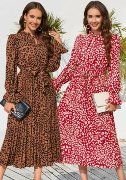 This Fall Winter Ladies Chic Leopard Stand Collar Tie Pleated Casual Midi Dress Design Made Of High Quality Polyster And Spandex Material. It Come With Good Stretch And Wearing Comfortable. Womenโs Midi Dresses Is Omnipotent And Suit For All Kinds Of Occasions – Daily Wear, Go To The Church, Commuting And Events Occasion. Midi Dresses Should Not Be Boring, Find Best Midi Dresses At Global Lover With Trendy Styles.