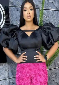 | Product Name | Fashion V-Neck Lantern Sleeve Short Top Casual Slim Waist Slim Fit Women’s T-Shirt |