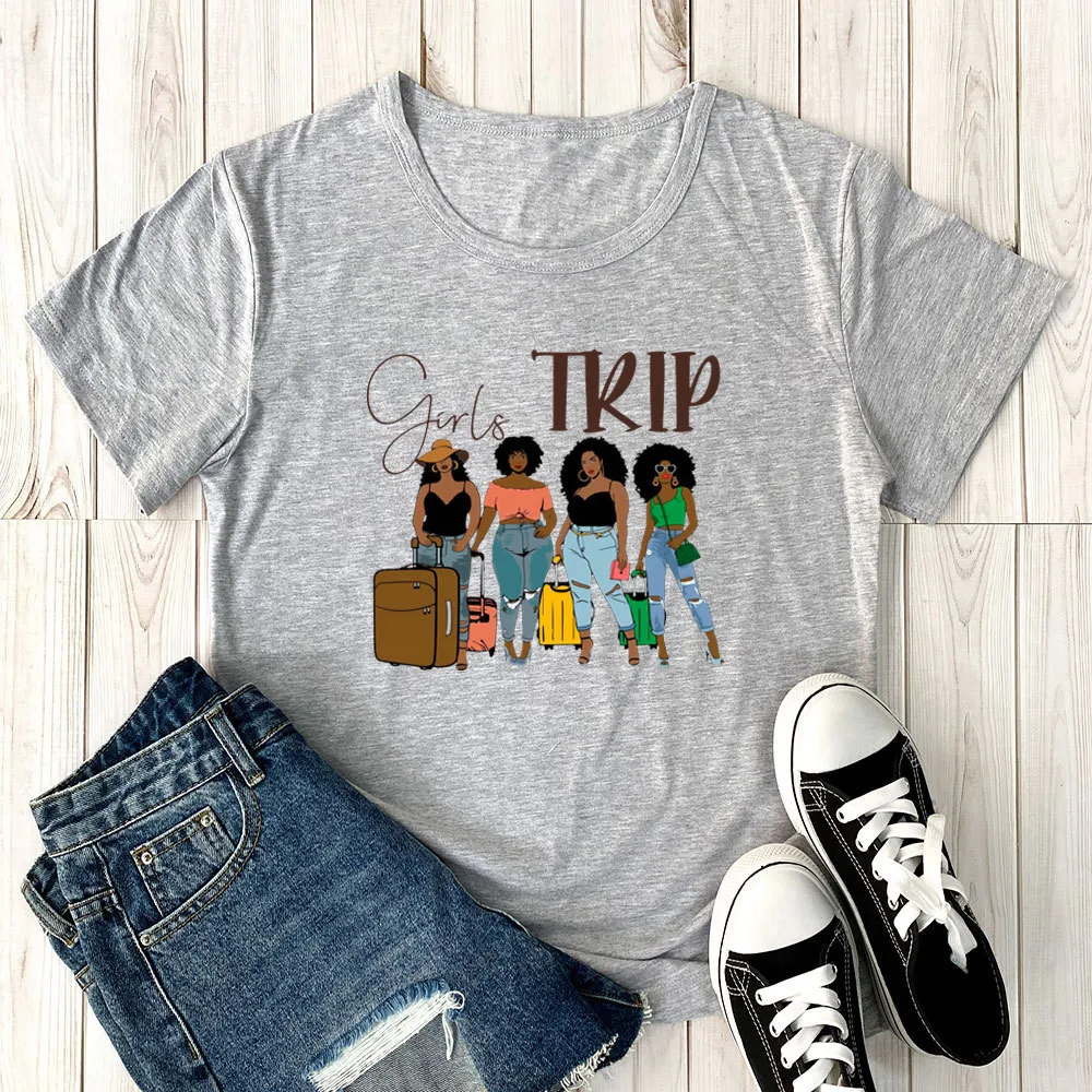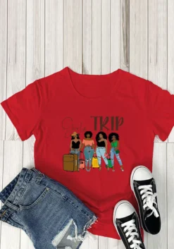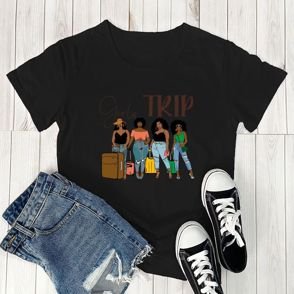 | Product Name | Girls Trip Letter Multi-Color Print Summer Fashion Short Sleeve T-Shirt |