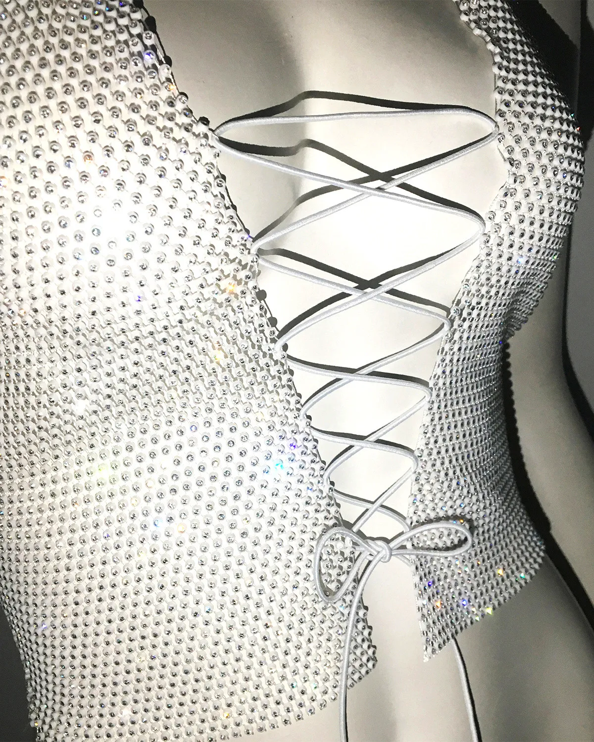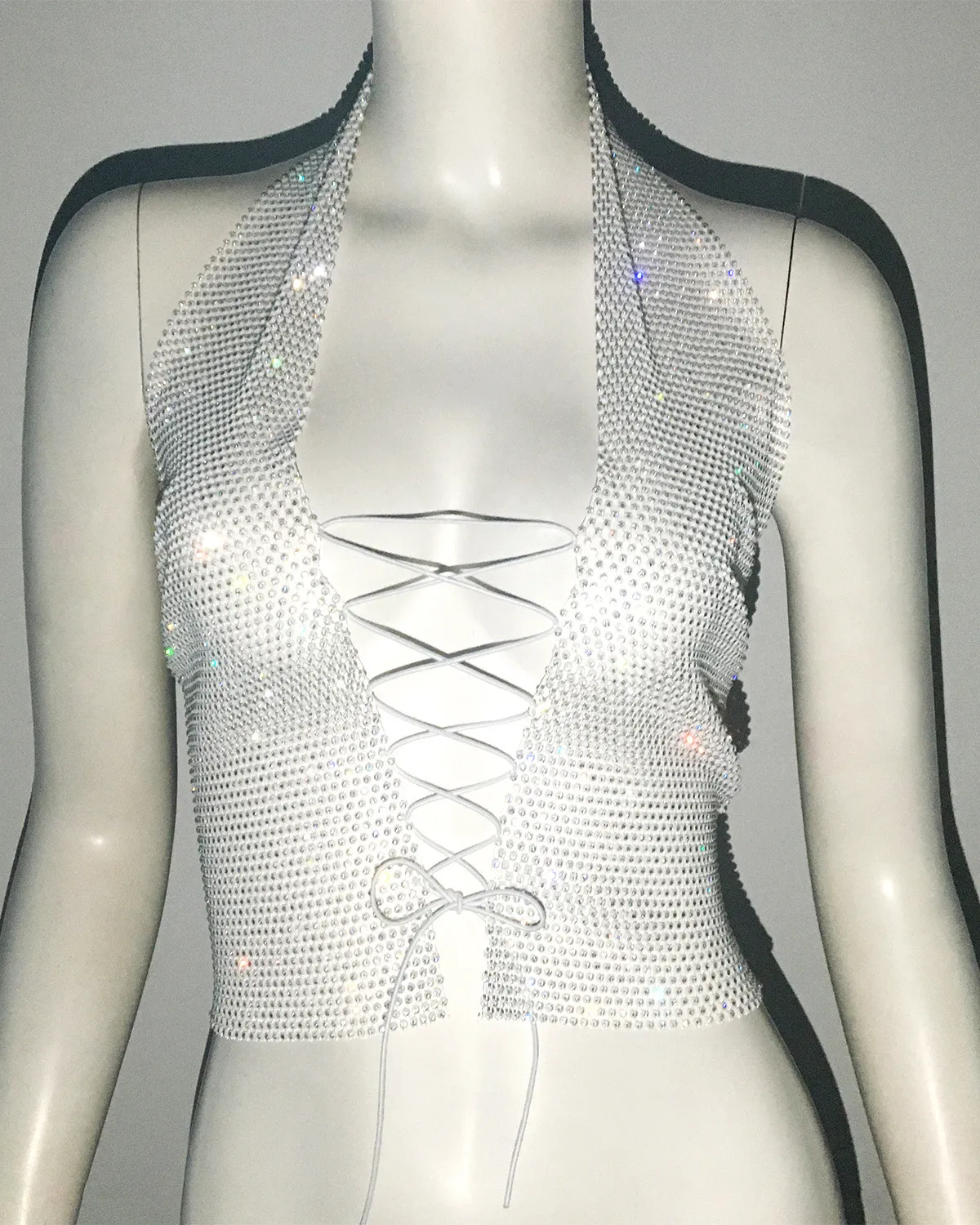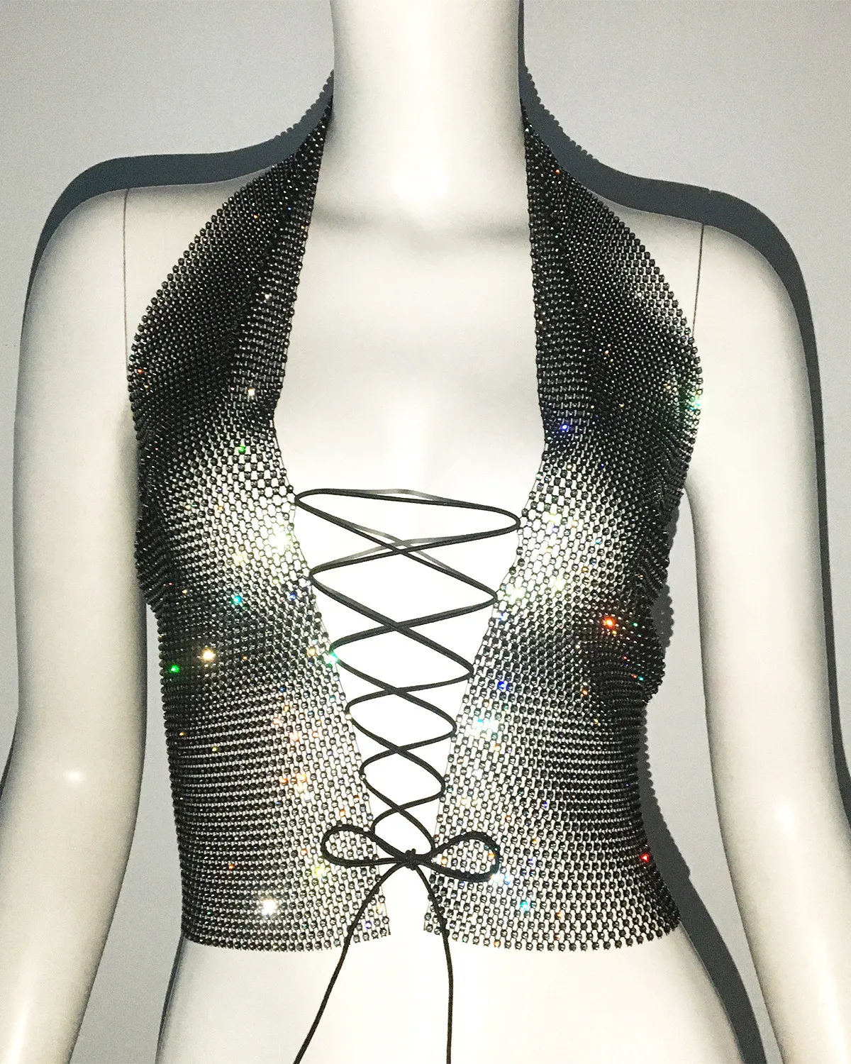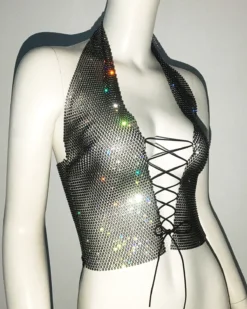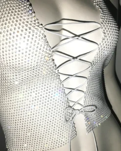 | Product Name | Ladies Lace-Up Rhinestone Fishnet Sexy Diamond Top |