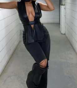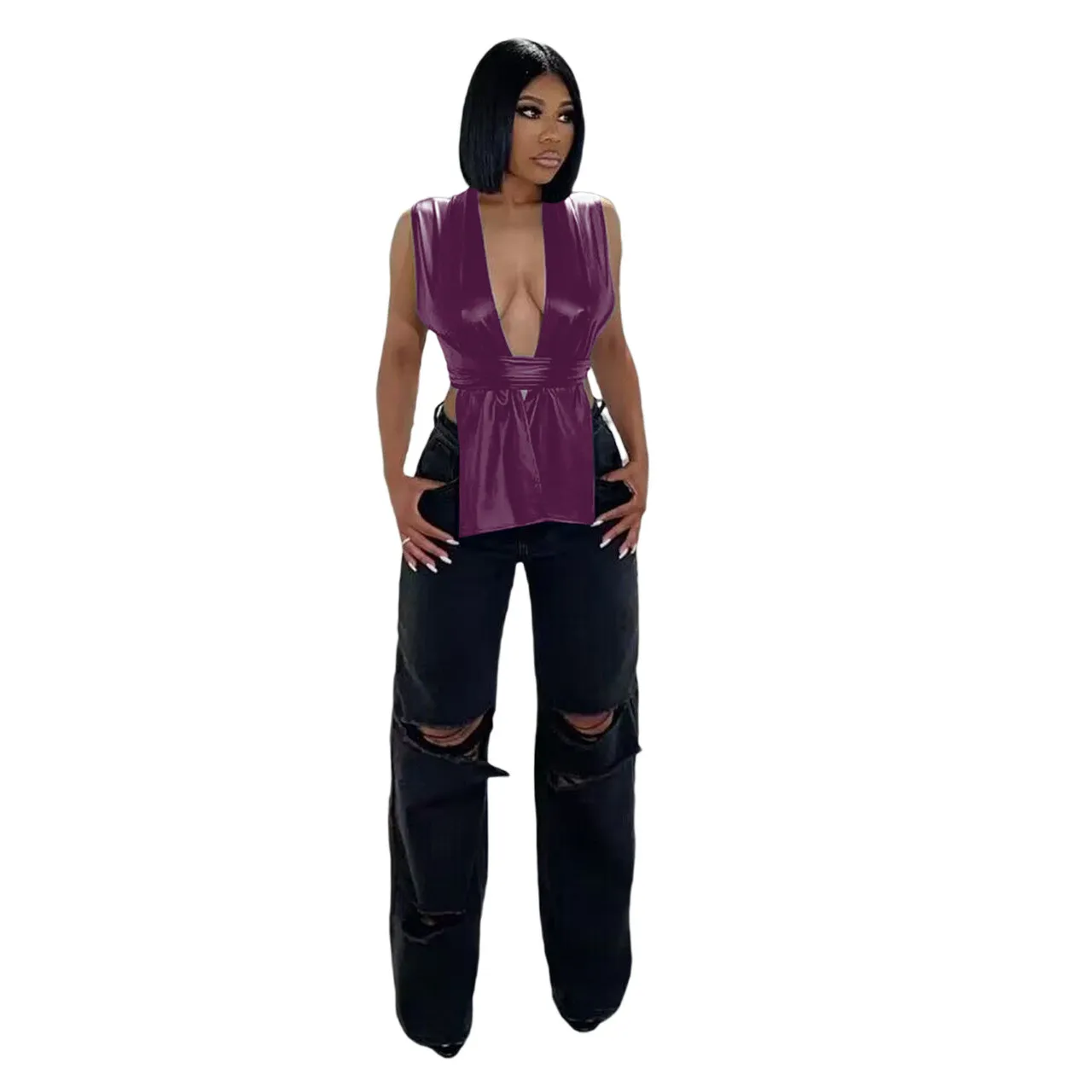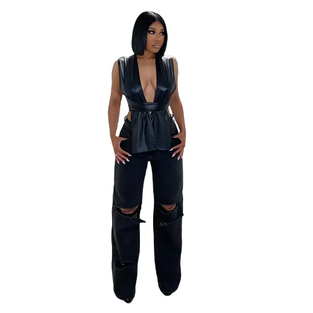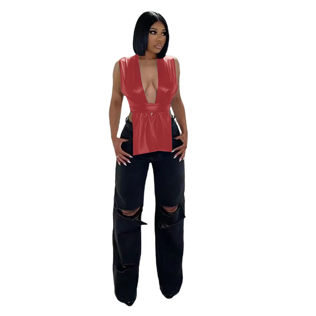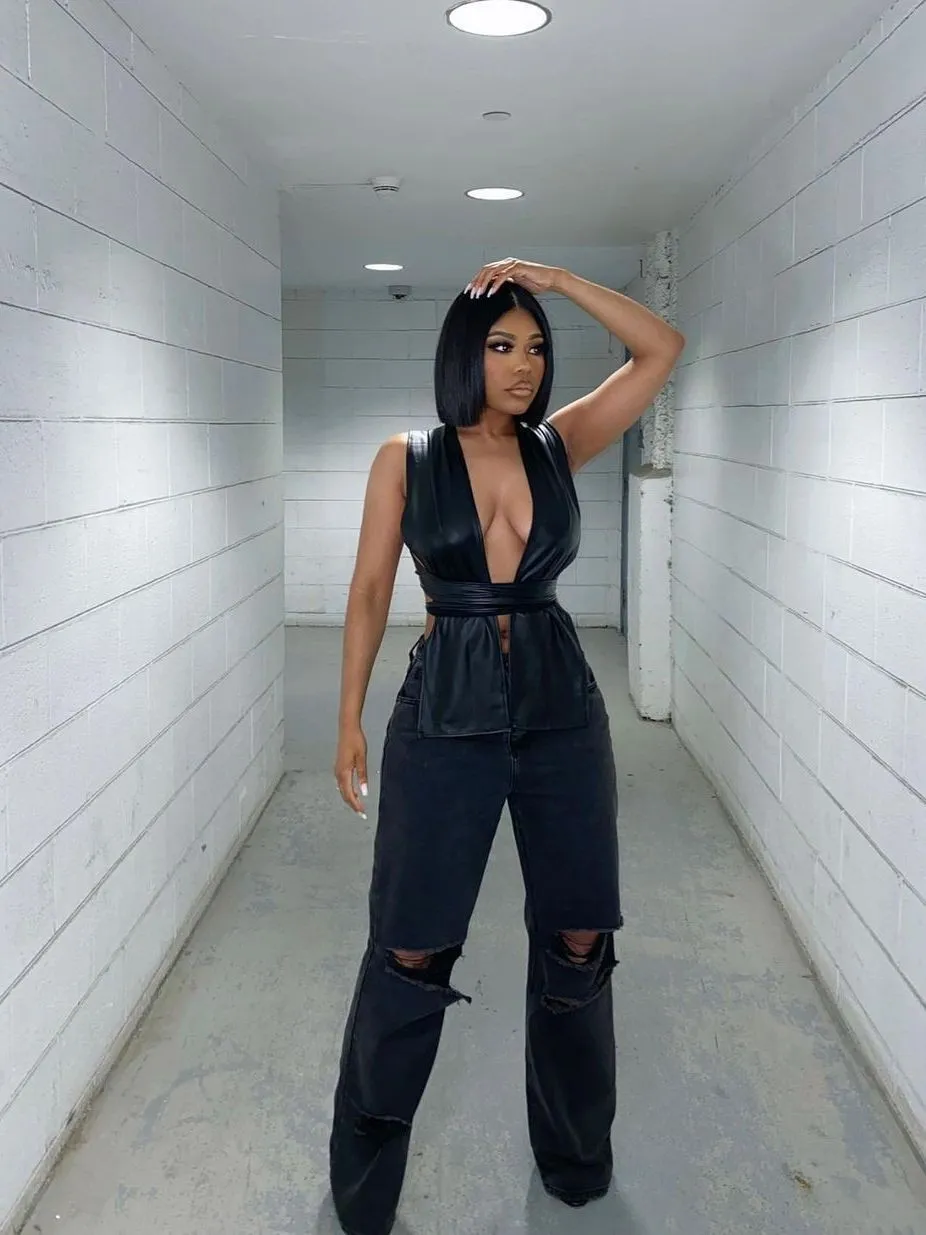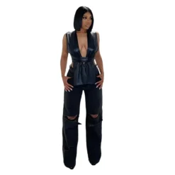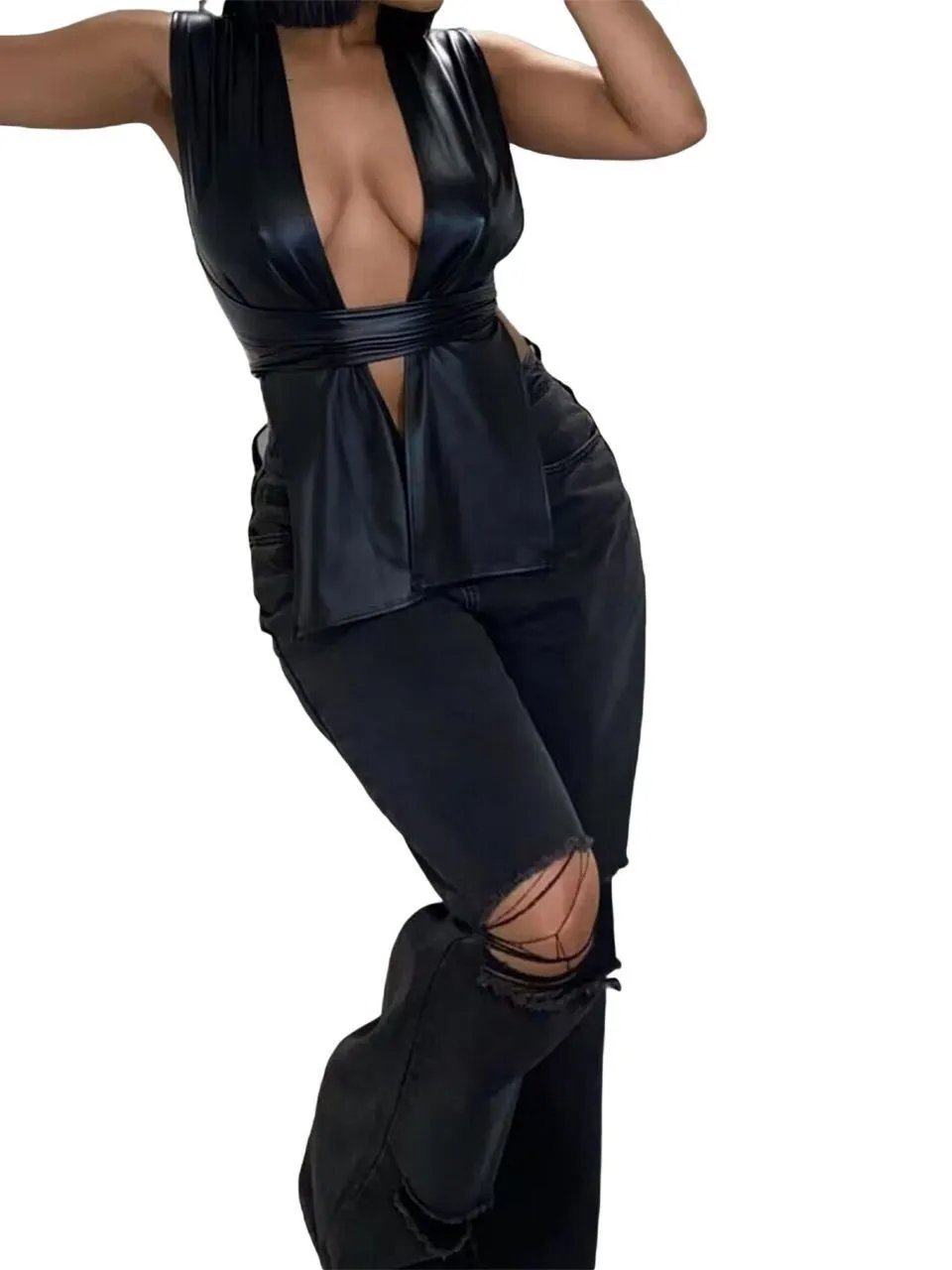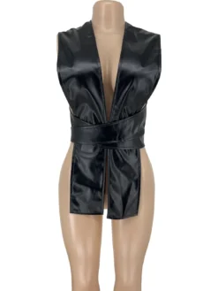 | Product Name | Ladies Sexy Irregular pu Leather tie Women’s Tops |