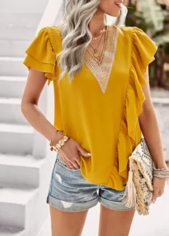 This Ladies Short Sleeve Ruffle Top Is Soft And Comfortable. From Street Style Cropped To Party Sexy Satin Tunics Blouse, From Office Elegant Silk To Holiday Loose Cut Chiffon Blouse, From Classic Stripes To Plaid Shirt, From Basic White Color To Printed Floral Blouse. Wholesale Blouses And Tops For Ladies Is a Must-Have Item On Your Everyday Life. Global Lover Shirts And Blouses Online Are Available In Wide Range Designs. When You Need More Wholesale Women Clothing, You Can Always Find Something Special That You Really Can Not Get From Other Places.