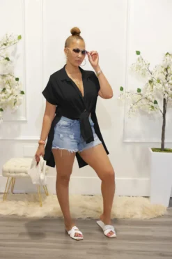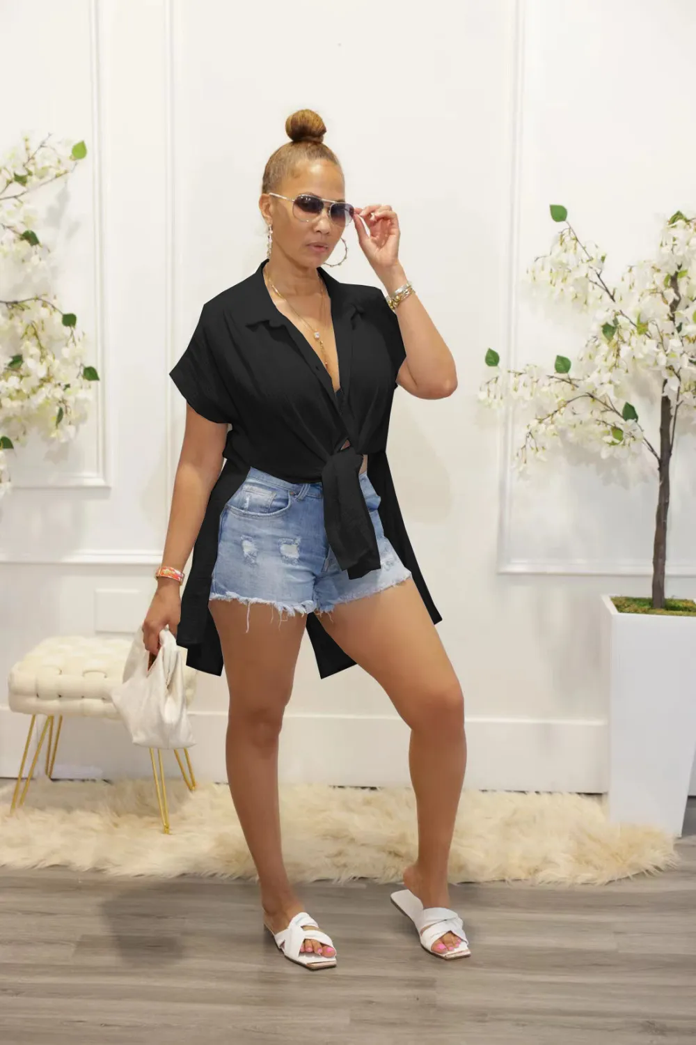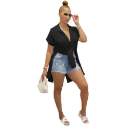 | Product Name | Ladies Spring Summer Loose Casual Solid Cotton Breathable Slit Shirt |