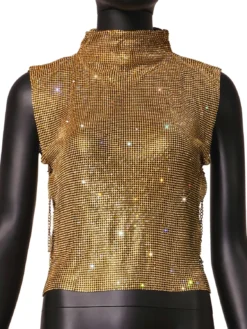 | Product Name | Nightclub Sexy Turtleneck Rhinestone Metal Top Vest |