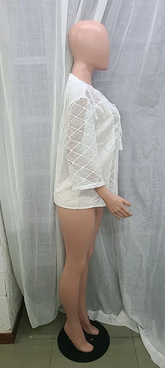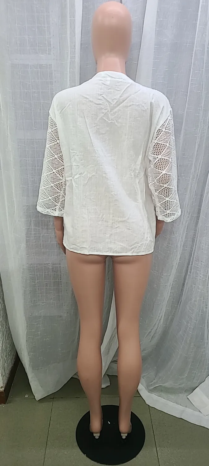| Product Name | Oversized Lace Patchwork U-Neck 3/4 Sleeve Top |
