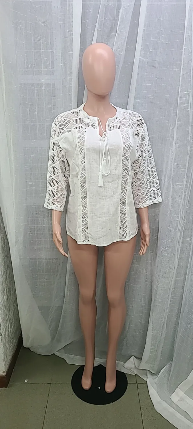 This Oversized Lace Patchwork u-Neck 3/4 Sleeve Top Is Soft And Comfortable. From Street Style Cropped To Party Sexy Satin Tunics Blouse, From Office Elegant Silk To Holiday Loose Cut Chiffon Blouse, From Classic Stripes To Plaid Shirt, From Basic White Color To Printed Floral Blouse. Wholesale Blouses And Tops For Ladies Is a Must-Have Item On Your Everyday Life. Global Lover Shirts And Blouses Online Are Available In Wide Range Designs. When You Need More Wholesale Women Clothing, You Can Always Find Something Special That You Really Can Not Get From Other Places.