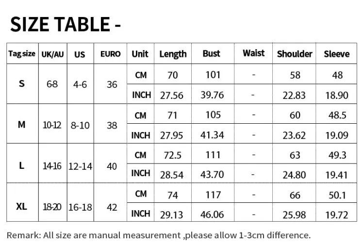 High Elasticity Fabric๏ผPlease add 0-0.5 CM from the garment size to body size.