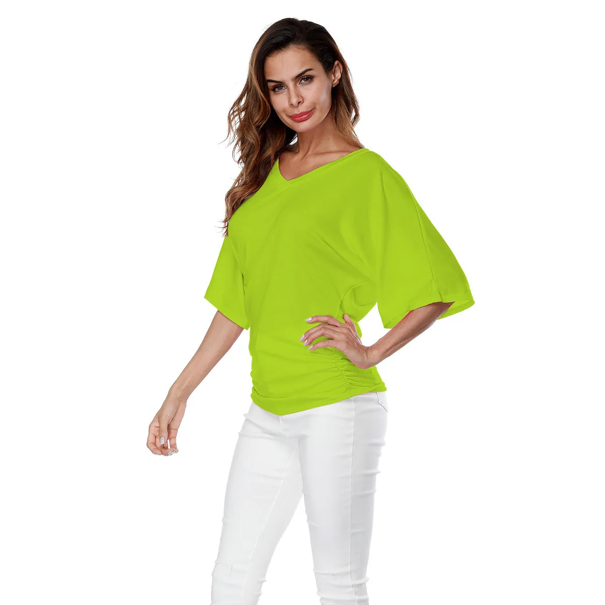 | Product Name | Plus Size Women Loose Bat Sleeves V-Neck Short Sleeve T-Shirt |