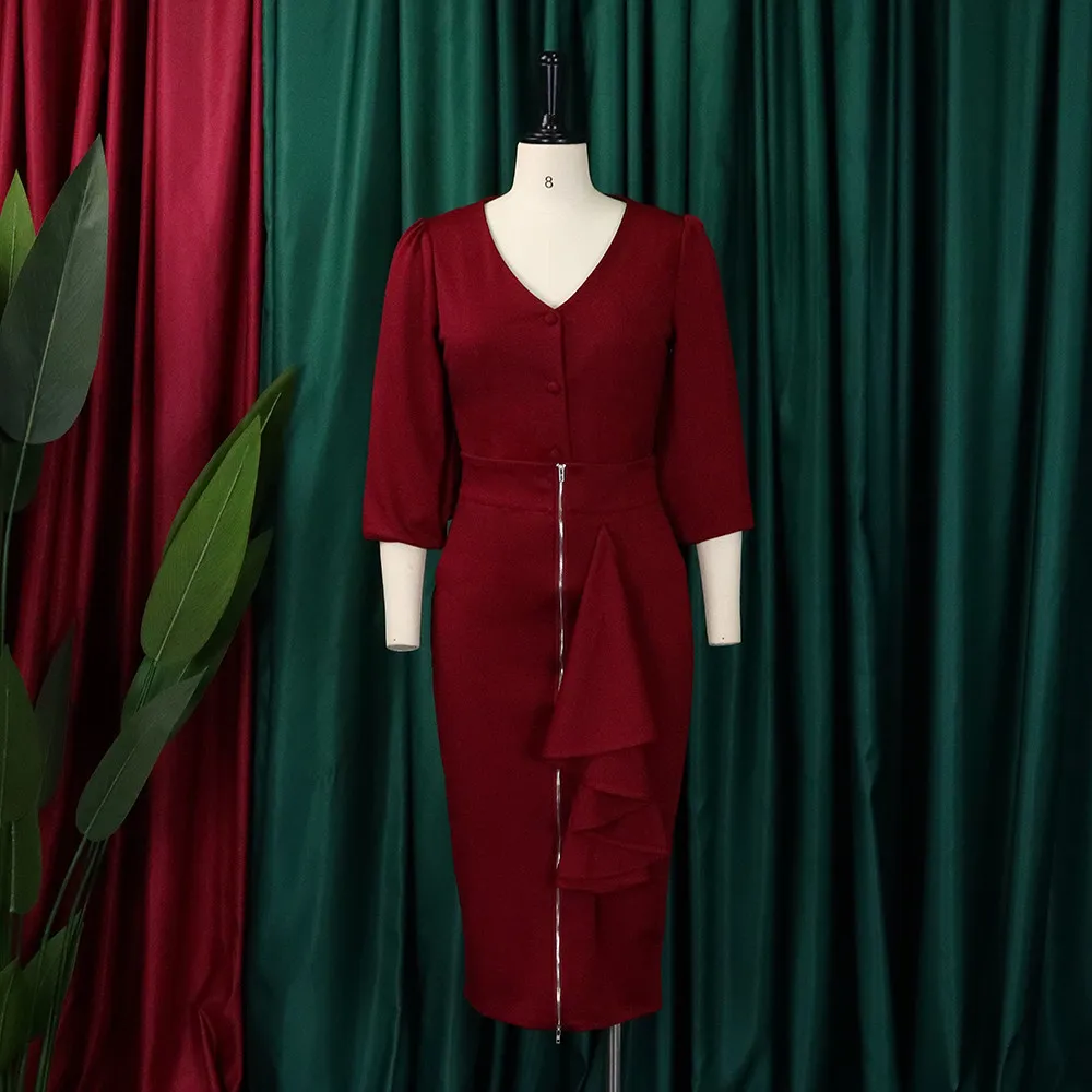 This Plus Size Women’s Fall/Winter v-Neck Long Sleeve Top Bodycon Skirt Two Piece Set Design Made Of High Quality Polyster And Spandex Material. It Come With Good Stretch And Wearing Comfortable. Womenโs Midi Dresses Is Omnipotent And Suit For All Kinds Of Occasions – Daily Wear, Go To The Church, Commuting And Events Occasion. Midi Dresses Should Not Be Boring, Find Best Midi Dresses At Global Lover With Trendy Styles.