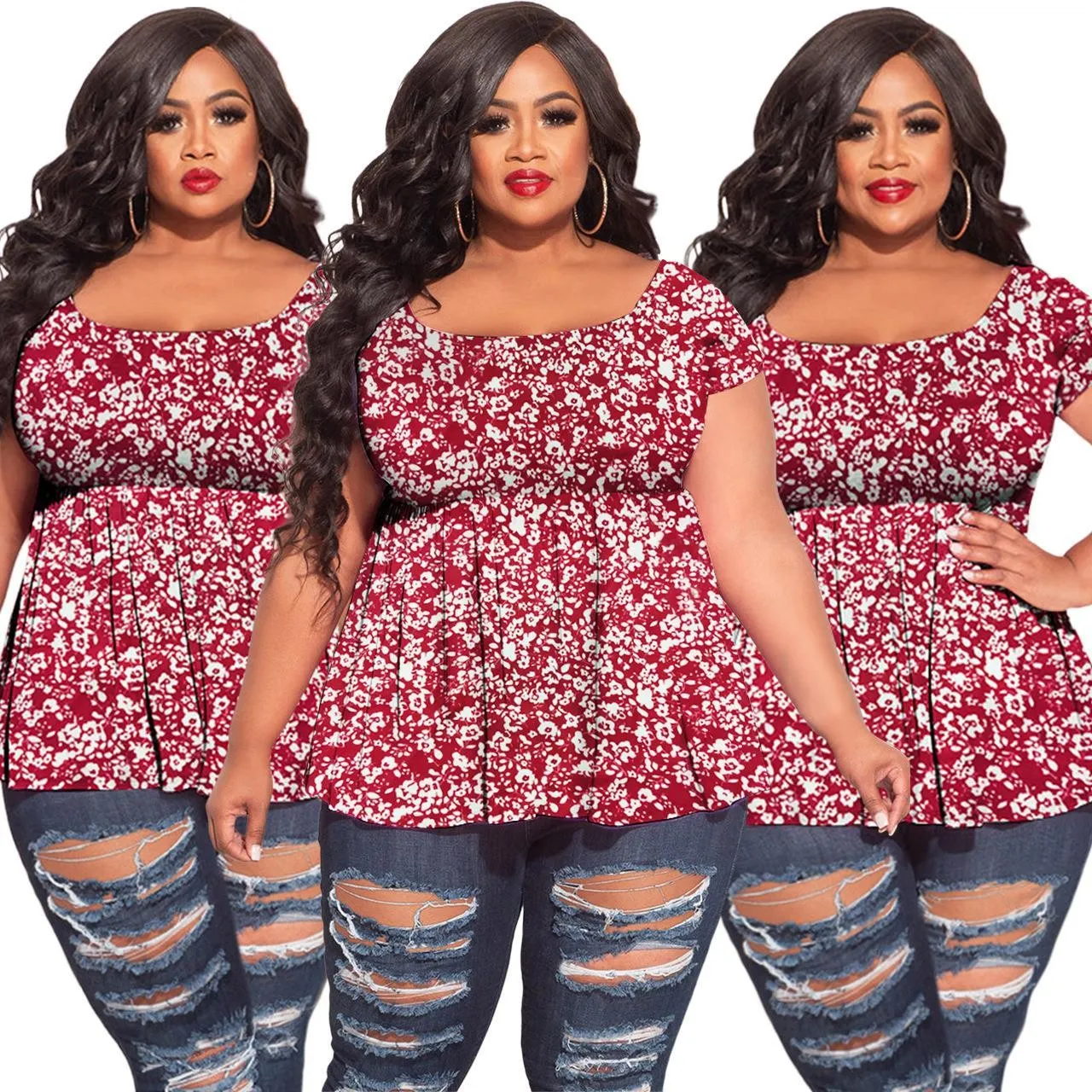 | Product Name | Plus Size Women’s Spring/Summer Floral Short Sleeve T-Shirt Top |
