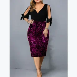 This Plus Size Women v Neck Sequin Cutout Half Sleeve Dress Design Made Of High Quality Polyster And Spandex Material. It Come With Good Stretch And Wearing Comfortable. Womenโs Midi Dresses Is Omnipotent And Suit For All Kinds Of Occasions – Daily Wear, Go To The Church, Commuting And Events Occasion. Midi Dresses Should Not Be Boring, Find Best Midi Dresses At Global Lover With Trendy Styles.