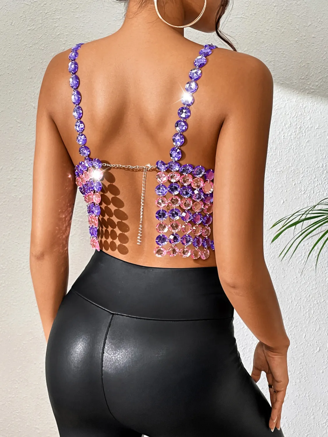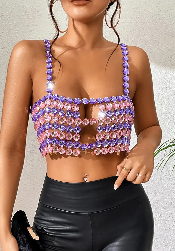 | Product Name | Rhinestone Patchwork Sexy Low Back Nightclub Tank Top |