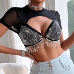 This See-Through Lacemesh Beaded Tassels Crop Top Design Made Of Thick Polyster And Spandex Materail, Which Is Soft And Comfortable. Crop Tops For Women Almost Earn Enough Rate Of Second Glance In Summer. Cute Crop Tops Has Become a Summer Collocation Method Especially Favored By Young Ladies. Find Huge Selection Of Cheap Wholesale Sexy Crop Tops At Global Lover Now.