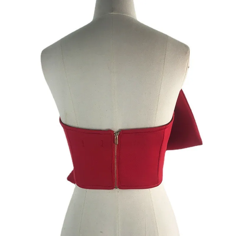 | Product Name | Sexy Bow Knot Wrapped Chest Strapless Versatile Short Top Shirt Women Tops |