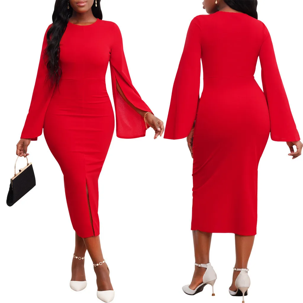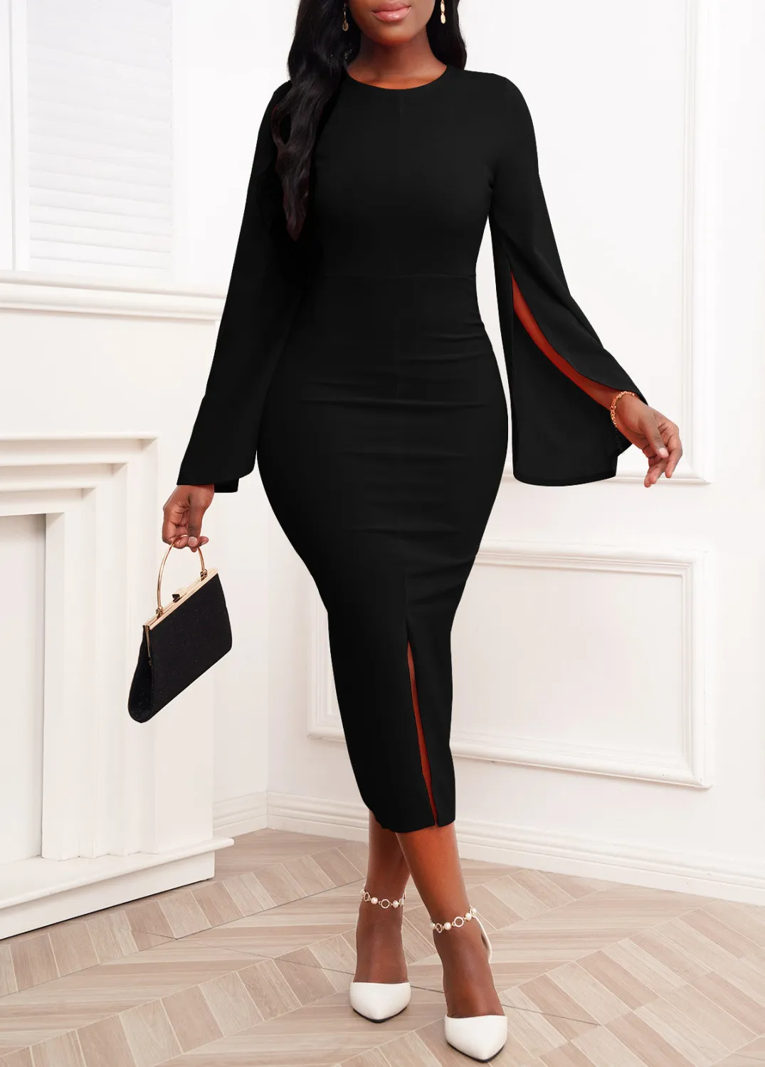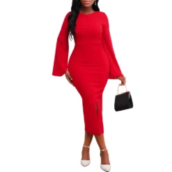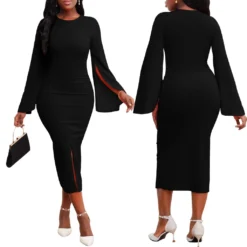 | Product Name | Sexy Fashion Elegant Round Neck Slit Women’S Midi Dress |
