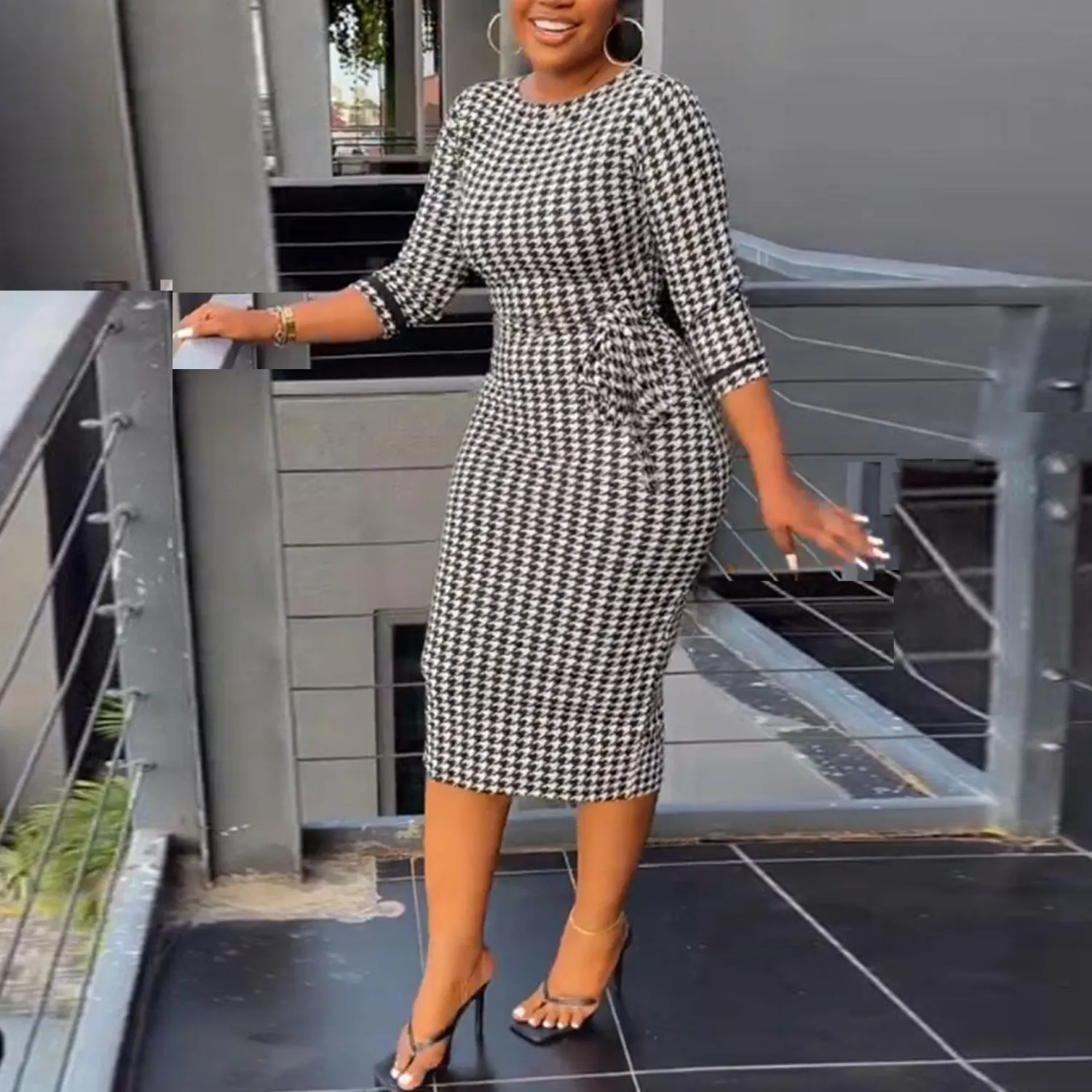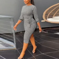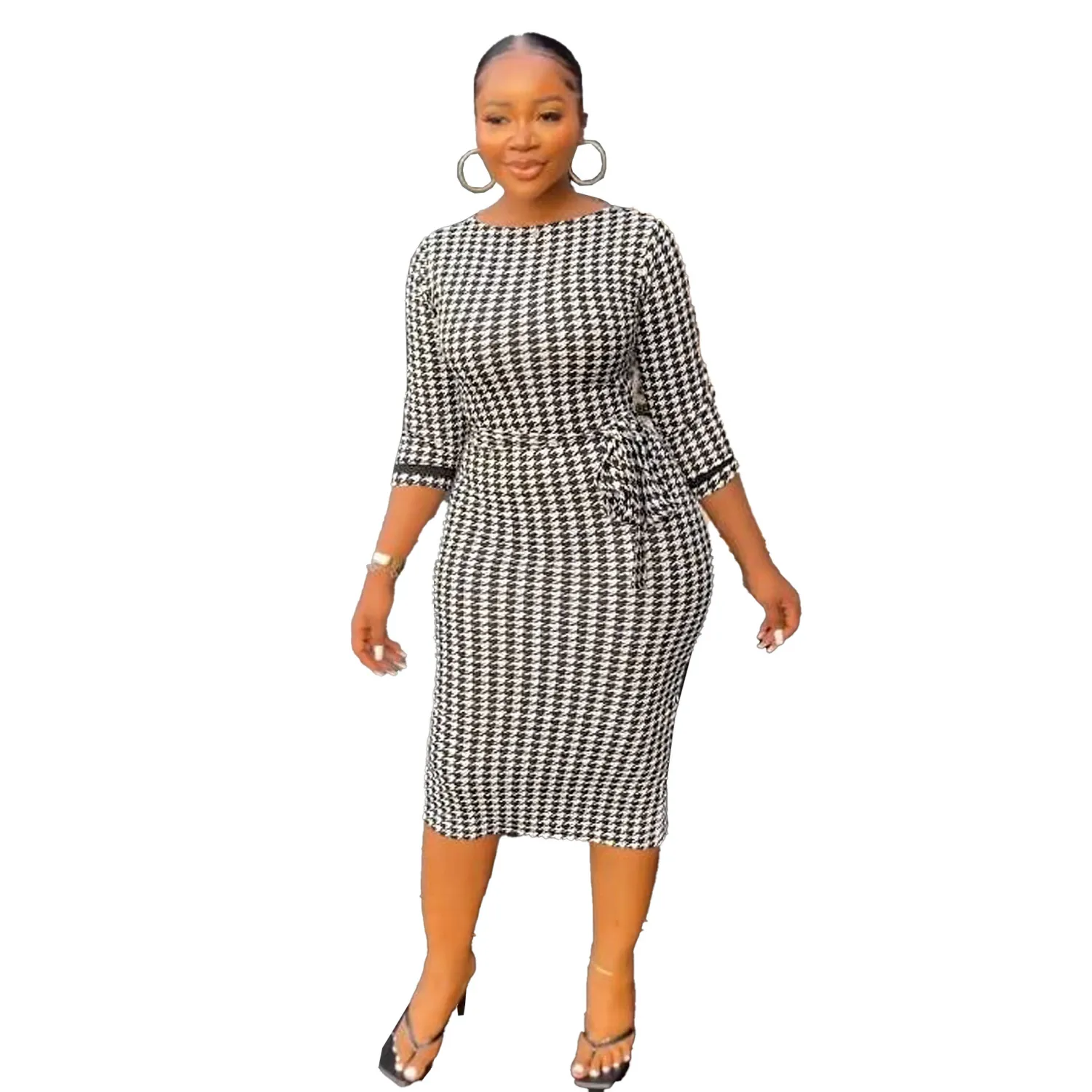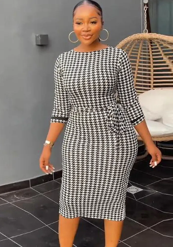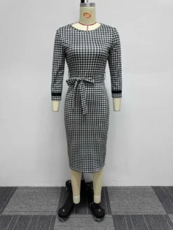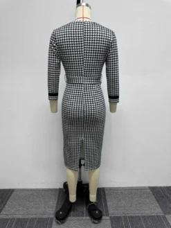 | Product Name | Sexy Printed Black And White Check Tight Fitting Midi Long Sleeve Bodycon Dress |