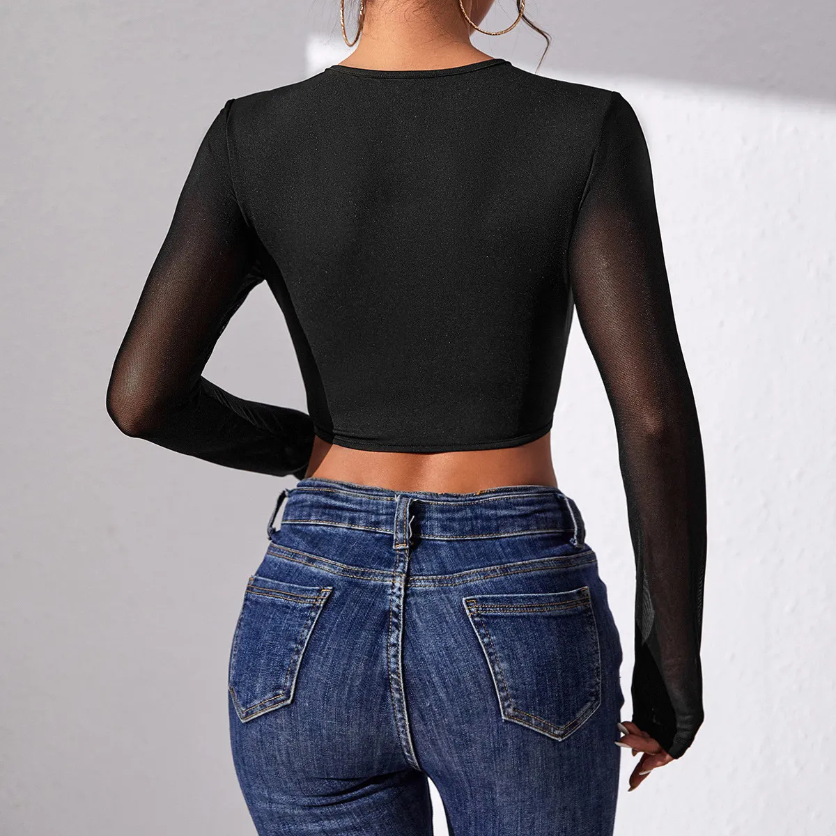 | Product Name | Sexy See-Through Patchwork T-Shirt Fishbone Tunic Long-sleeved Top Women |