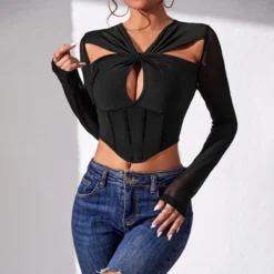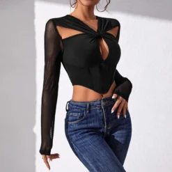 This Sexy See-Through Patchwork t-Shirt Fishbone Tunic Long-Sleeved Top Women Design Made Of Thick Polyster And Spandex Materail, Which Is Soft And Comfortable. Crop Tops For Women Almost Earn Enough Rate Of Second Glance In Summer. Cute Crop Tops Has Become a Summer Collocation Method Especially Favored By Young Ladies. Find Huge Selection Of Cheap Wholesale Sexy Crop Tops At Global Lover Now.