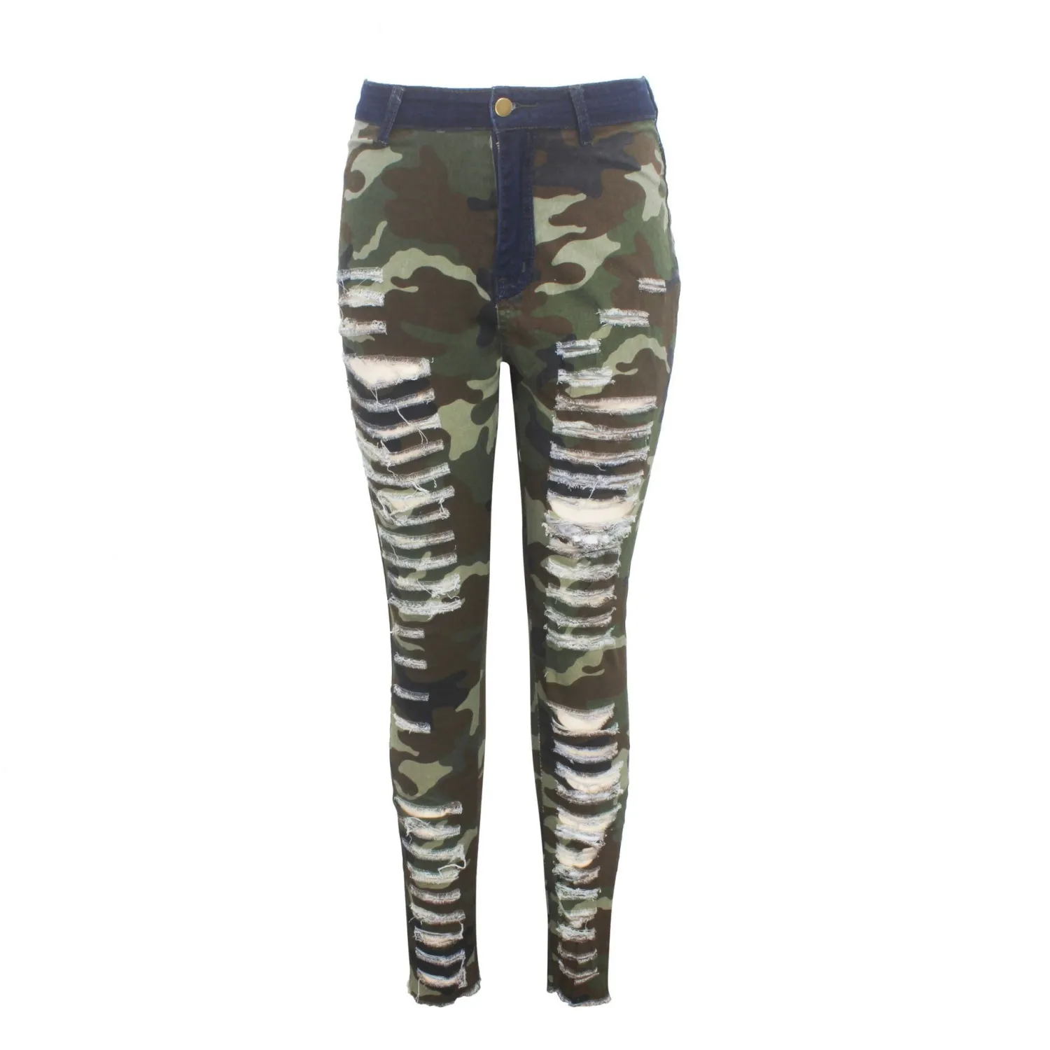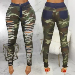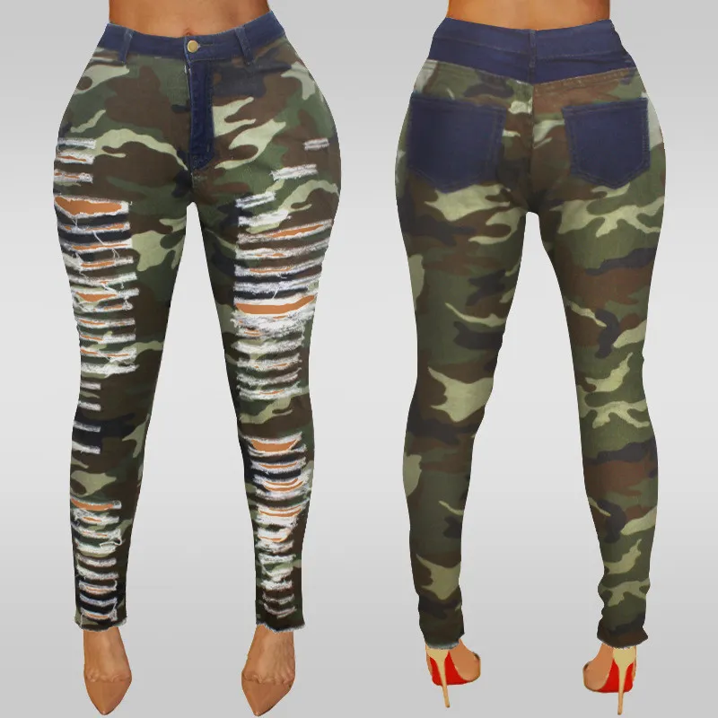 | Product Name | Sexy Style Ripped High Waisted Tight Fitting Raw Hem Camouflage Tight Pants |