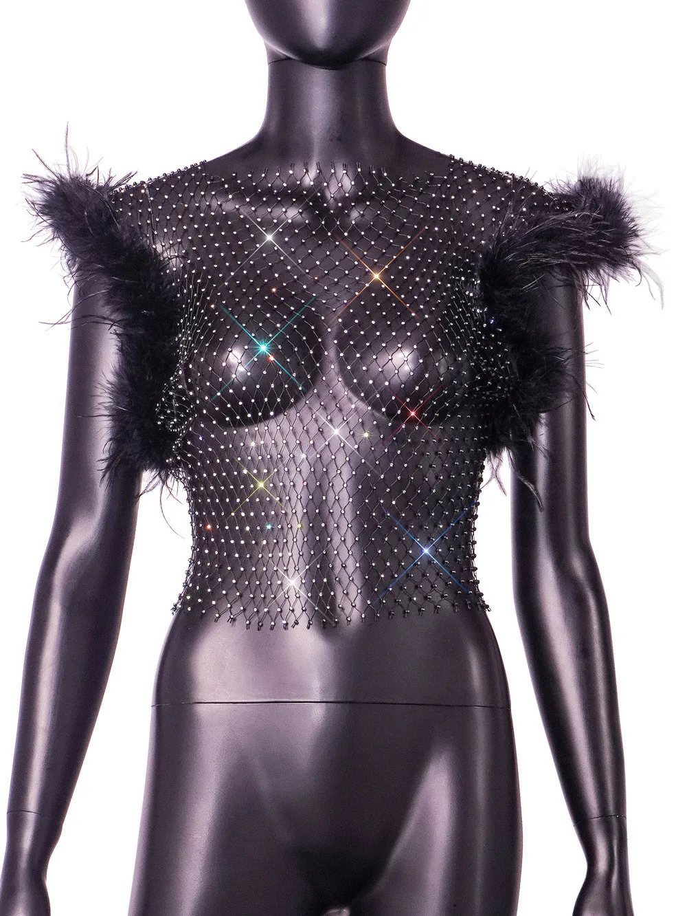 | Product Name | Slim Fit Diamond Flash Nightclub Style Sexy Rhinestone Fishnet Top |