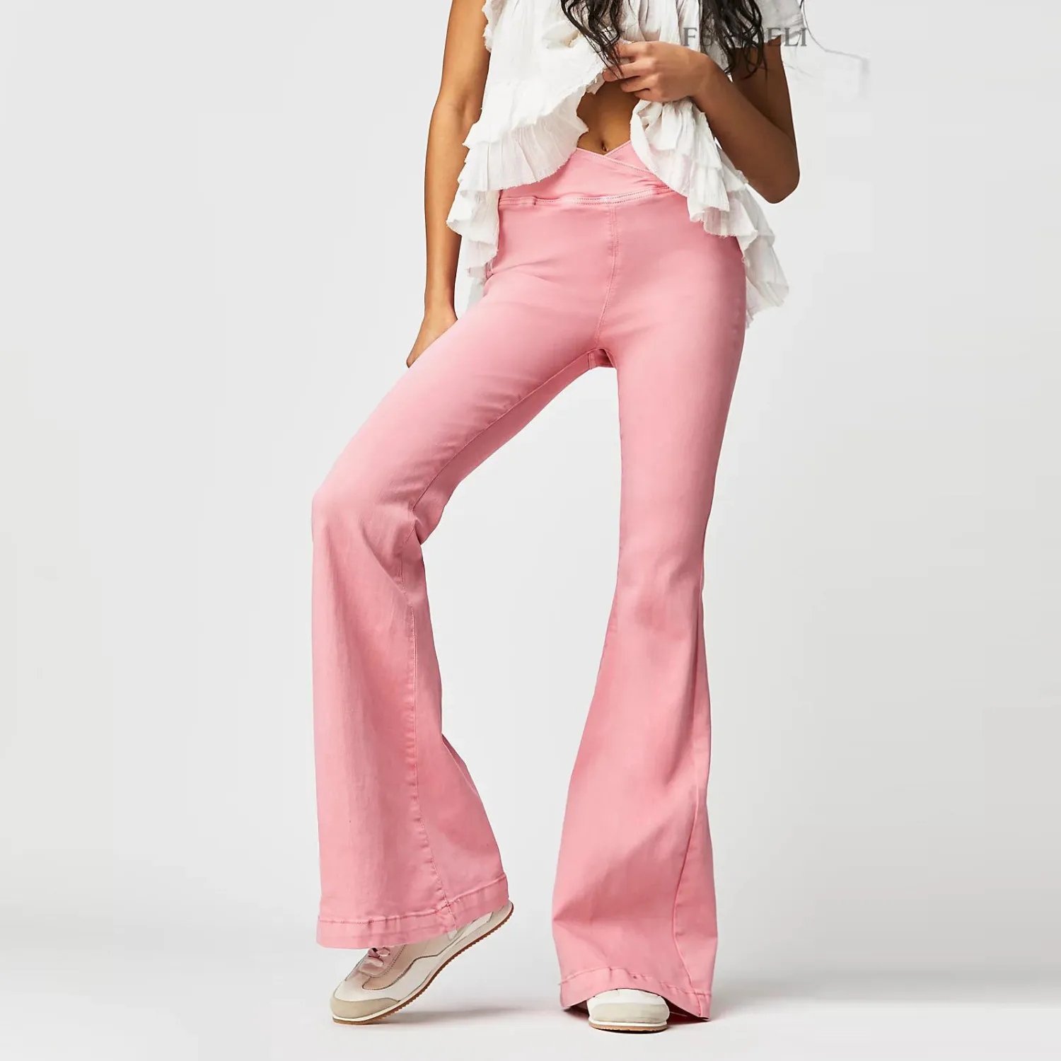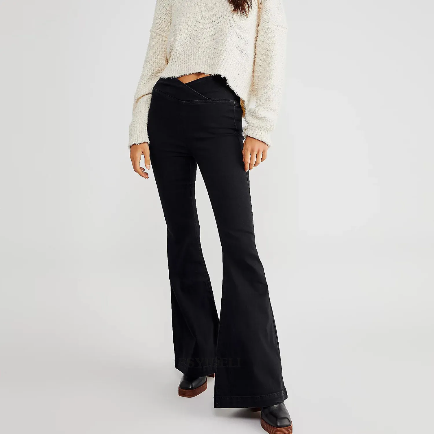 This Spring And Autumn Irregular Denim Pants Women’s High Waist Slim Fit Bell Bottom Trousers Design Made Of Durable And Stretchy Material. It Is a Must-Have Item For Everyday Life. Women Casual Pants Wholesale At Global Lover Has Wide Range Selections On Colors, Material, Print, And Designs. Ladies Can Always Find Her Right Trousers Here – No One Can Refuse The Temptation Of Sexy Leather Pants. Cool Jeans Trousers Is a Must-Have Item For Ladies No Matter What Age. Flared Pants Is Here Again, Becoming One Of The Icons Of Fashion Once Again. When You Need More Wholesale Women Trousers, You Can Always Find What You Need On Our Wholesale Women Clothing Online Store.