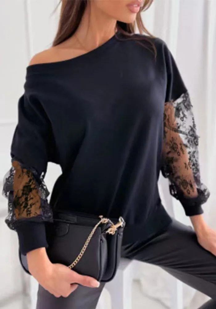 | Product Name | Spring Solid Color Chic Lace Patchwork Slash Shoulder Loose Long-Sleeved Lace Shirt |