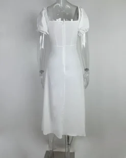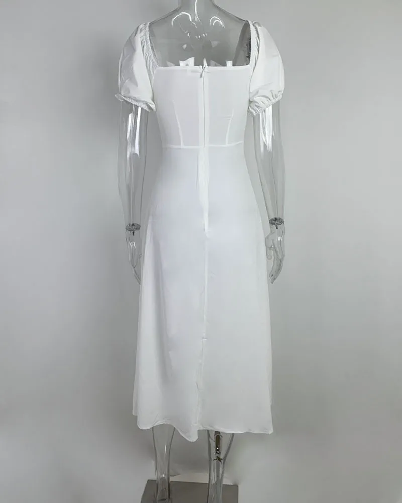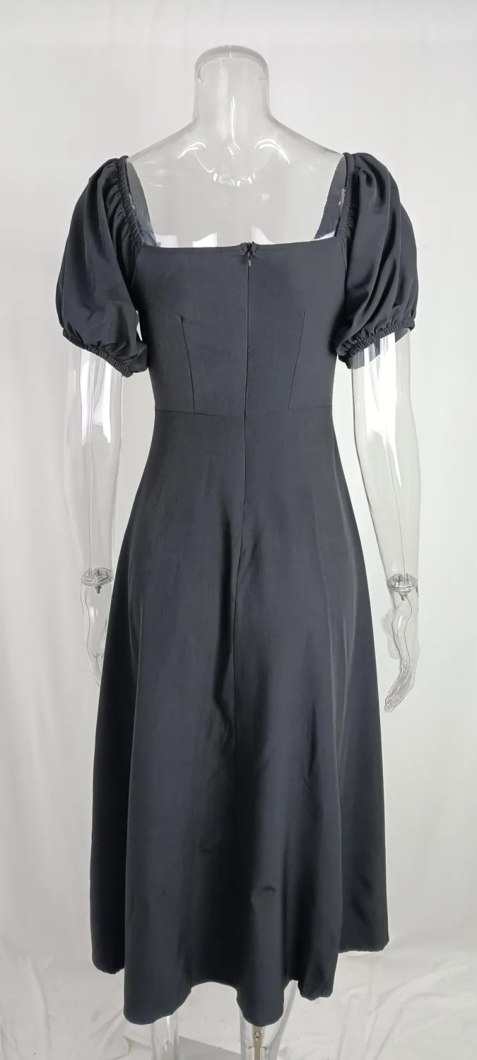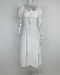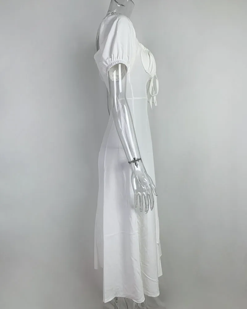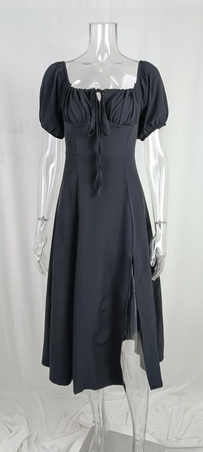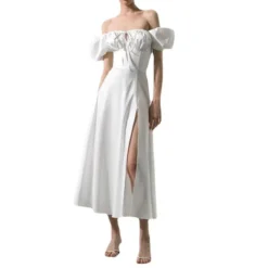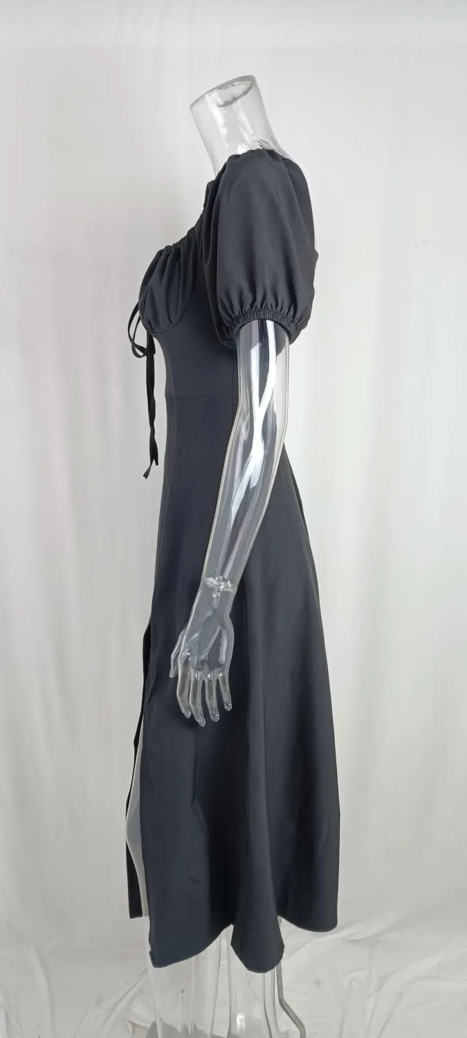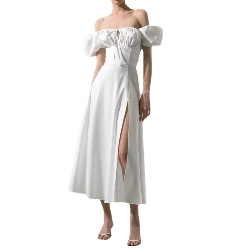 | Product Name | Spring Summer Dress Women’s Slimming Off Shoulder Puff Sleeve Tie Slit Long Dress |