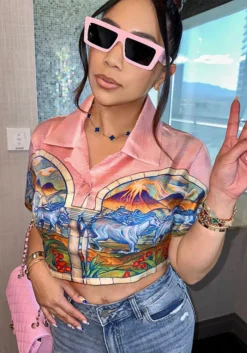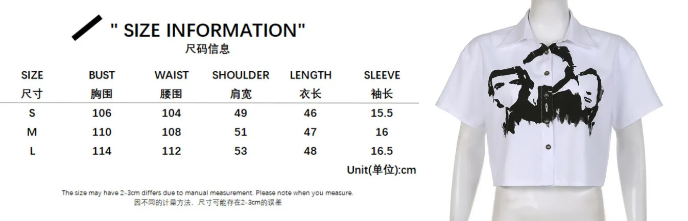 This Spring Summer Fashion Trend Ladies Abstract Face Print Turndown Collar Short Sleeve Button Loose Cropped Shirt Is Soft And Comfortable. From Street Style Cropped To Party Sexy Satin Tunics Blouse, From Office Elegant Silk To Holiday Loose Cut Chiffon Blouse, From Classic Stripes To Plaid Shirt, From Basic White Color To Printed Floral Blouse. Wholesale Blouses And Tops For Ladies Is a Must-Have Item On Your Everyday Life. Global Lover Shirts And Blouses Online Are Available In Wide Range Designs. When You Need More Wholesale Women Clothing, You Can Always Find Something Special That You Really Can Not Get From Other Places.