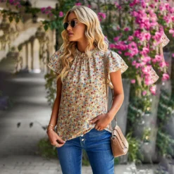 | Product Name | Spring Summer Women’S Loose Casual Top Floral Round Neck Shirt |