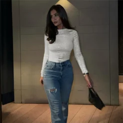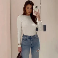 This Spring Women’s Fashion Round Neck Long Sleeve Beaded Slim Short t-Shirt Design Made Of Thick Polyster And Spandex Materail, Which Is Soft And Comfortable. It Is a Must-Have Item For All Seasons. Global Lover Offer Most Fashionable Wholesale Womenโs t Shirts – From Basic White And Black t Shirts To Lace, And Print t Shirts For Wholesale. We Also Make Customized Shirt With Your Personalized Logo And Print With Low Moq.
